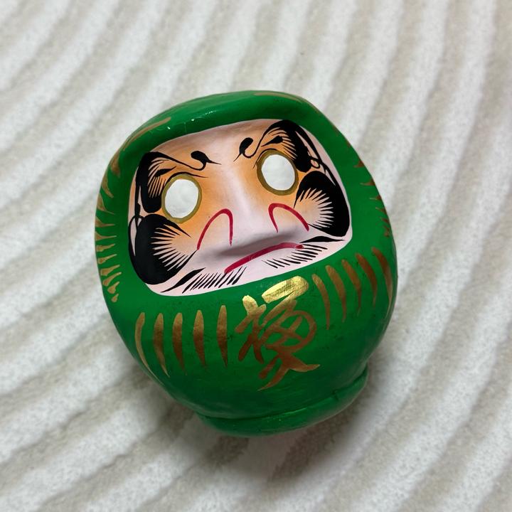 🎎 Японская кукла Дарума (зелёная) — талисман удачи и гармонии Продаю красивую японскую куклу Дарума — символ исполнения желаний и внутреннего баланса. Зелёный цвет ассоциируется со здоровьем, гармонией и спокойствием 🌿 ✨ Как пользоваться: 1. Загадайте желание или цель 2. Закрасьте один глаз 3. Держите Даруму на видном месте 4. После исполнения желания — закрасьте второй глаз. «Оригинальная японская наклейка с надписью “Дарума на удачу” (開運達磨) и символом счастья 福» Артикул: 540979