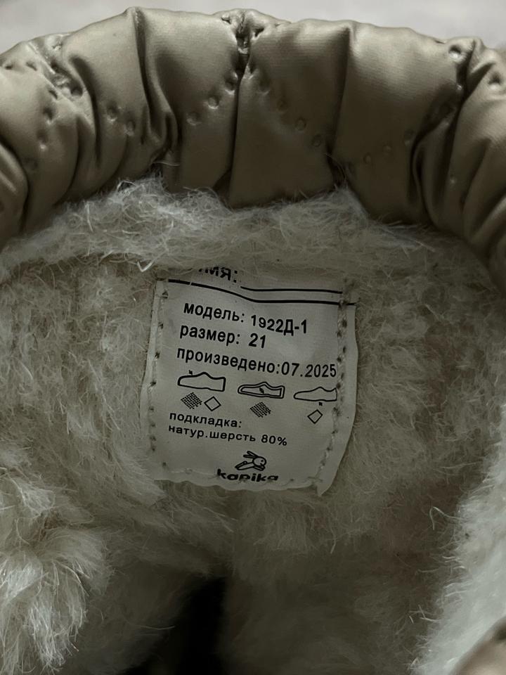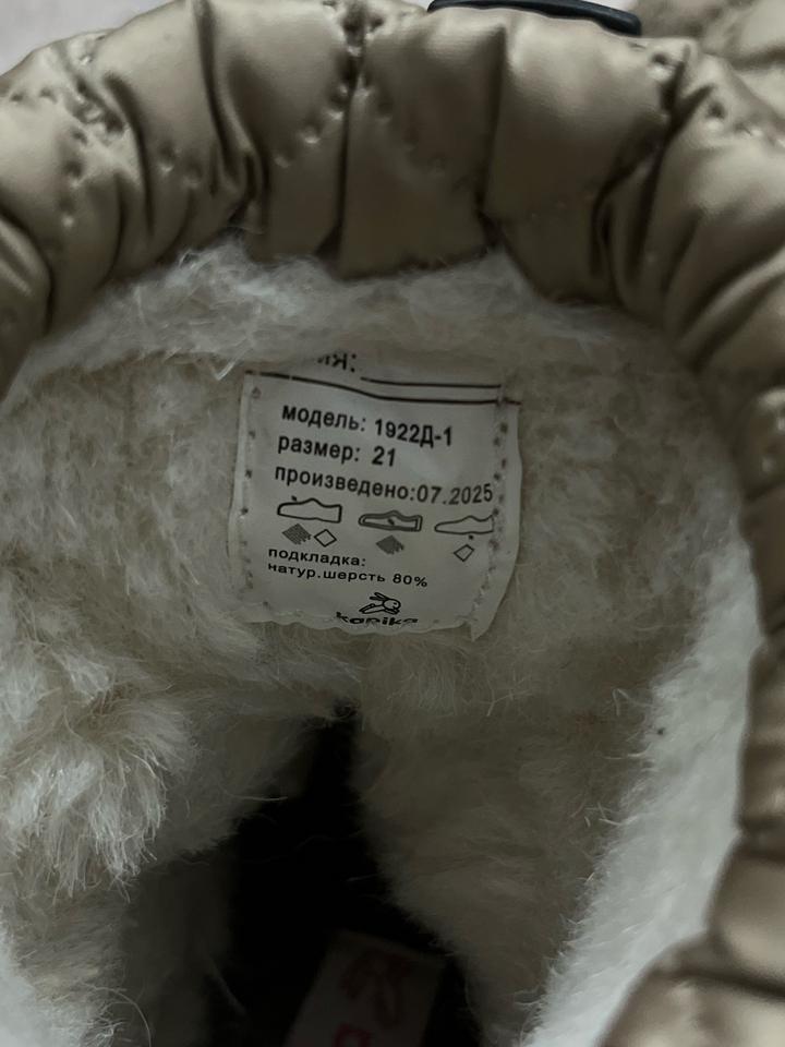 Зимние детские ботинки «Kapika» в бежевом цвете, размер - 21, подкладка: 80% натуральная шерсть Артикул: 540996