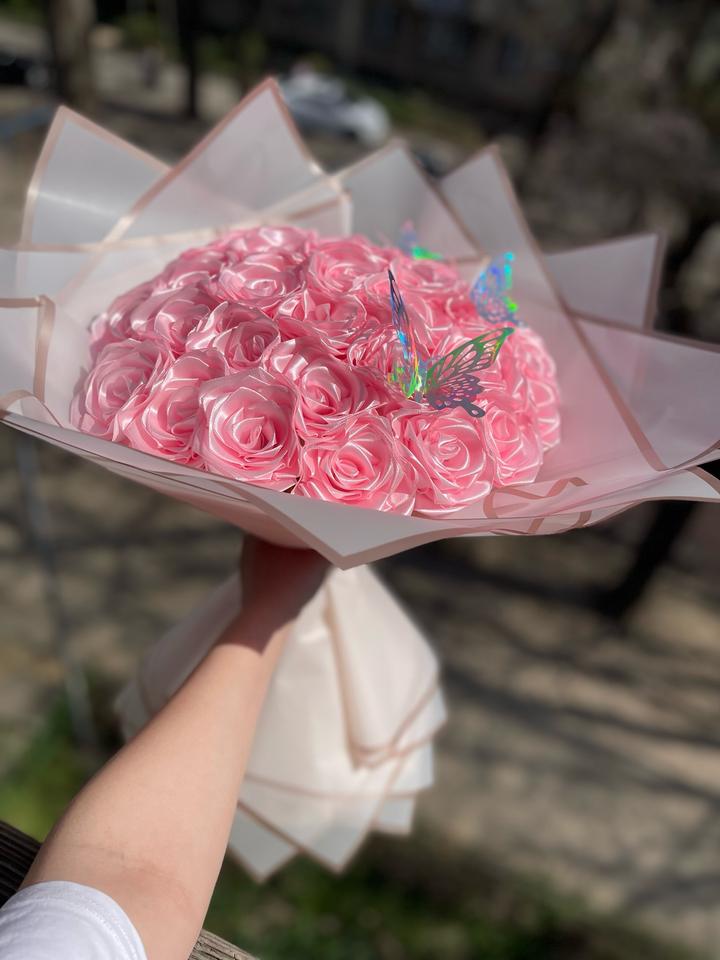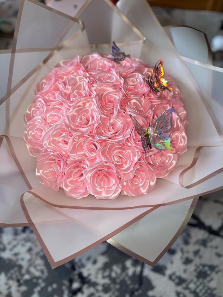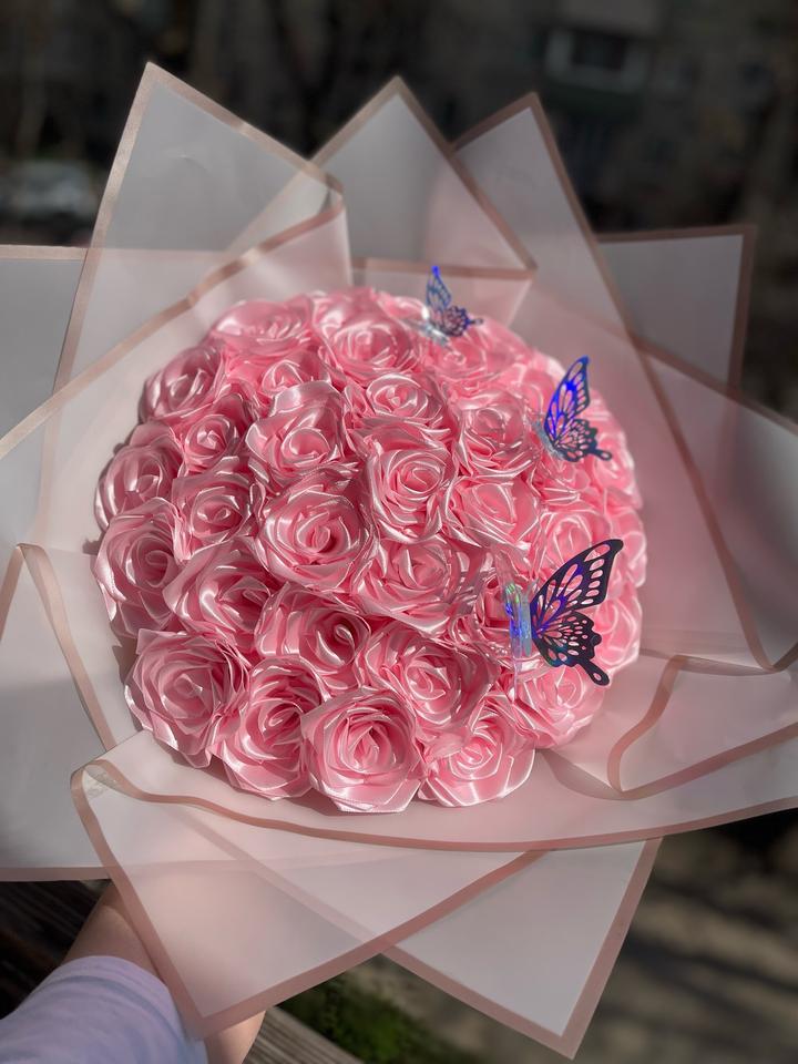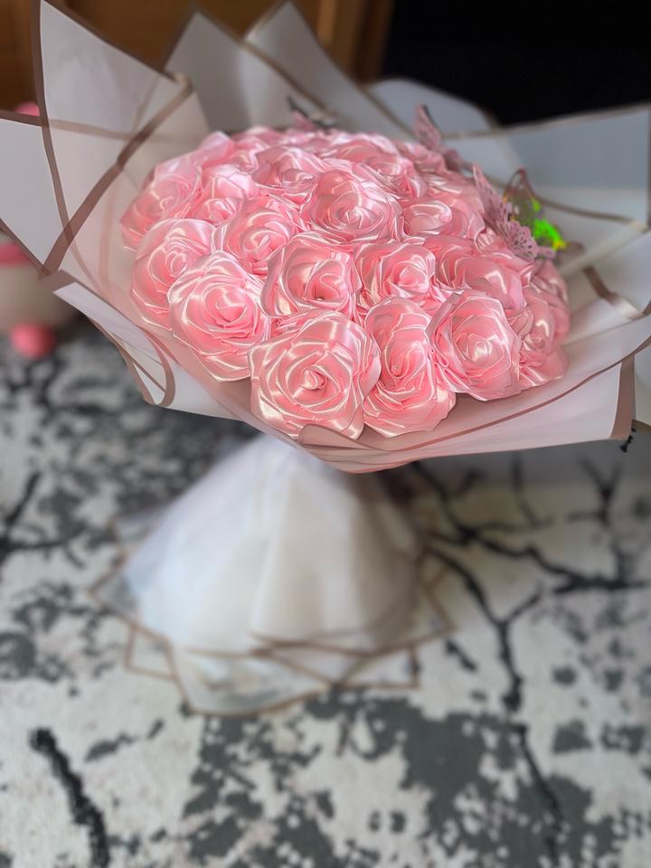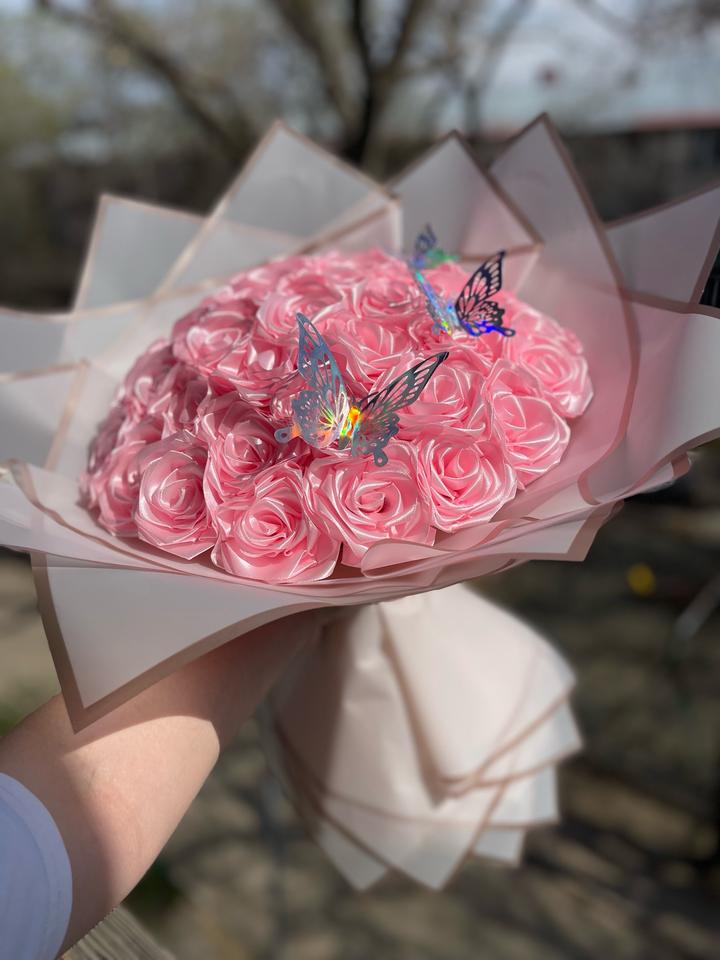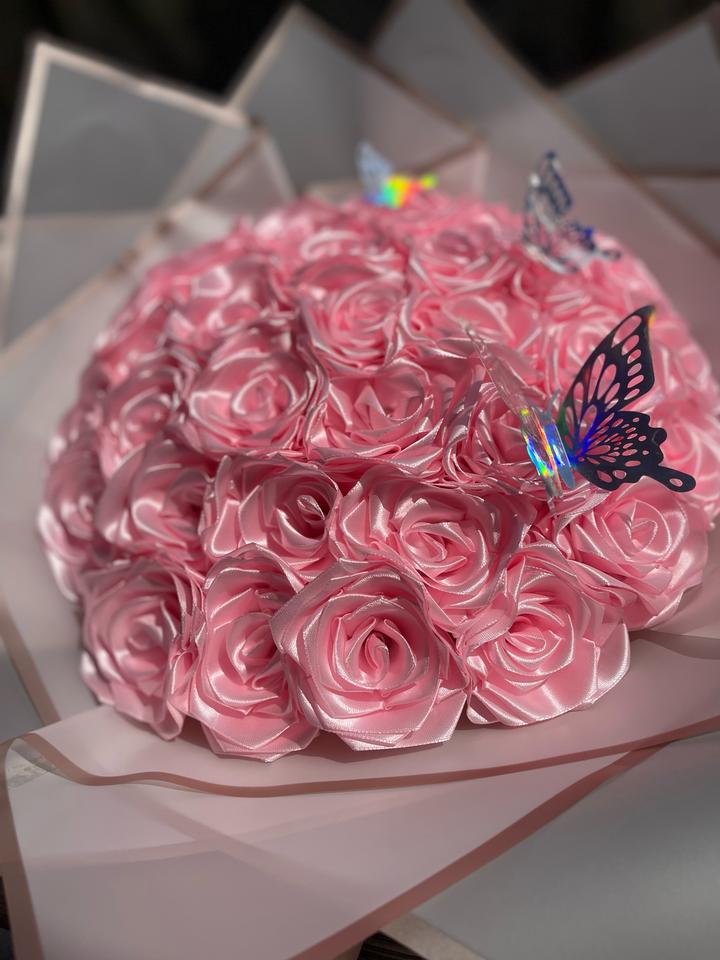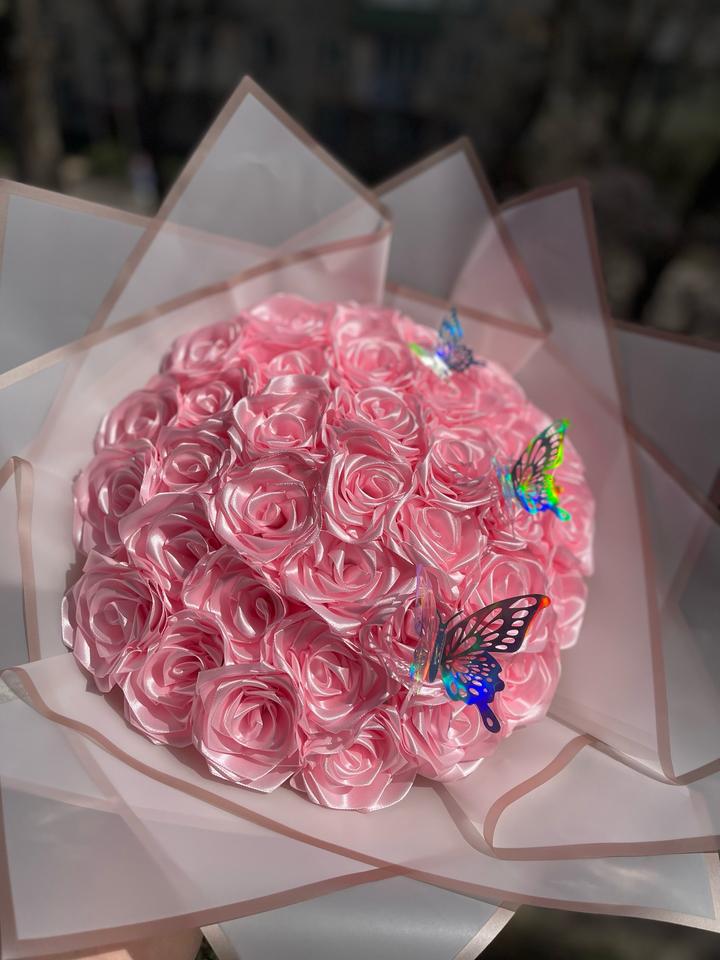 Букет из атласной ленты, 35 роз длина 45 см ширина 45 см Артикул: 541037