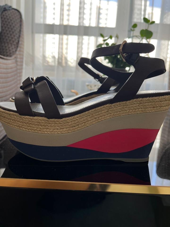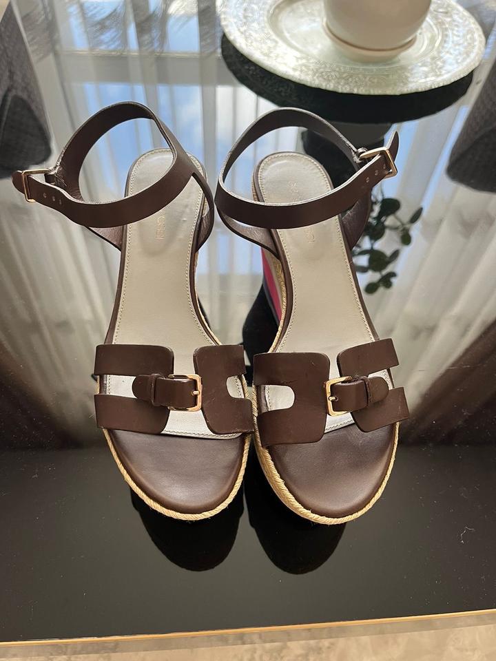 Комфортные Босоножки эспадрильи на высокой танкетке Sergio Rossi. Плетенный джут и натуральные кожанные ремешки. Очень удобная колодка, ноги спят в них . Как для курортного отдыха так и для города . Один выход . Артикул: 541086