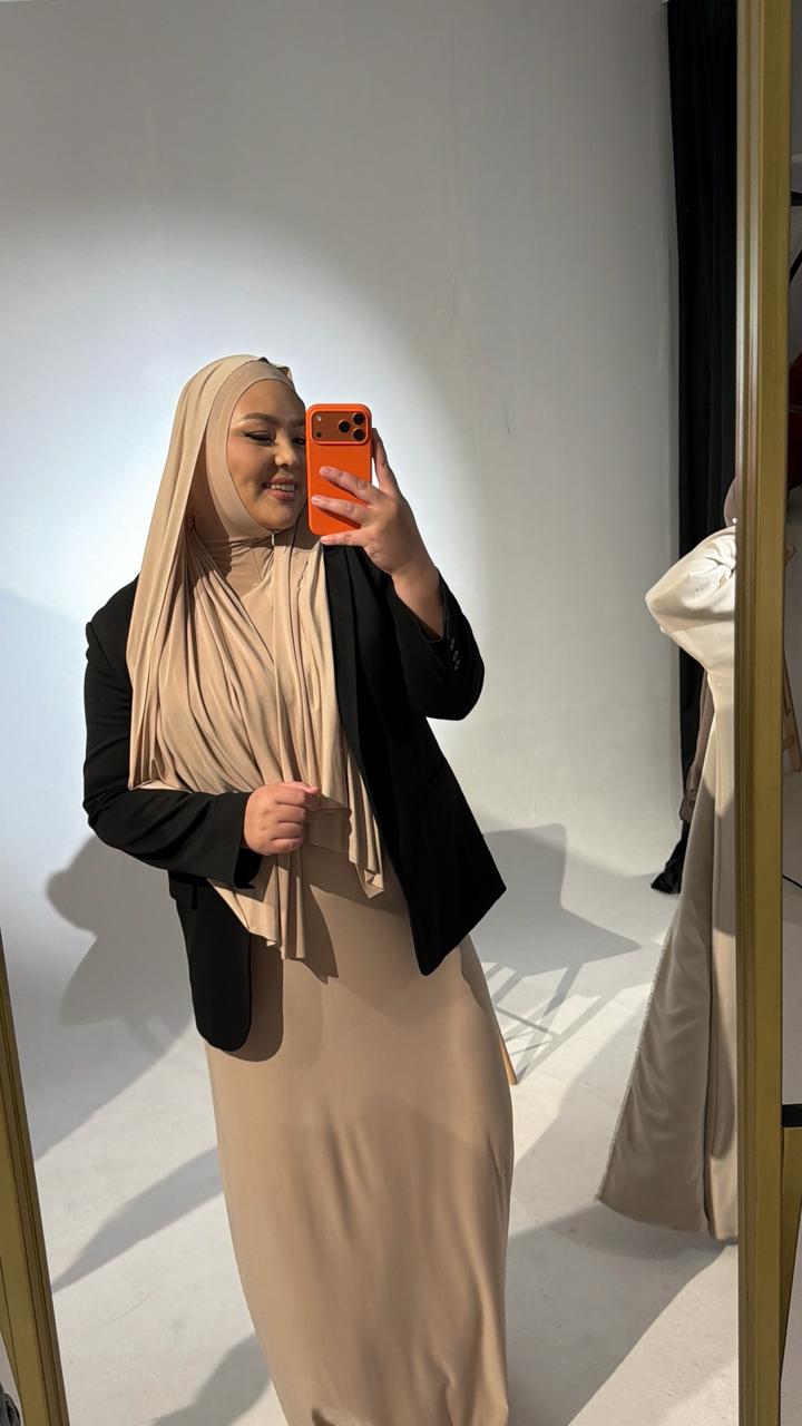 Нежный и сдержанный образ в бежевых оттенках 🤍 Лёгкое платье мягко струится по фигуре, создавая элегантный силуэт, а аккуратно уложенный платок в тон добавляет утончённости и спокойной эстетики. Минимализм в деталях делает образ особенно гармоничным — ничего лишнего, только чистота линий и мягкость цвета. Идеальный вариант для тех, кто любит сочетание скромности, женственности и стиля ✨ Артикул: 541220