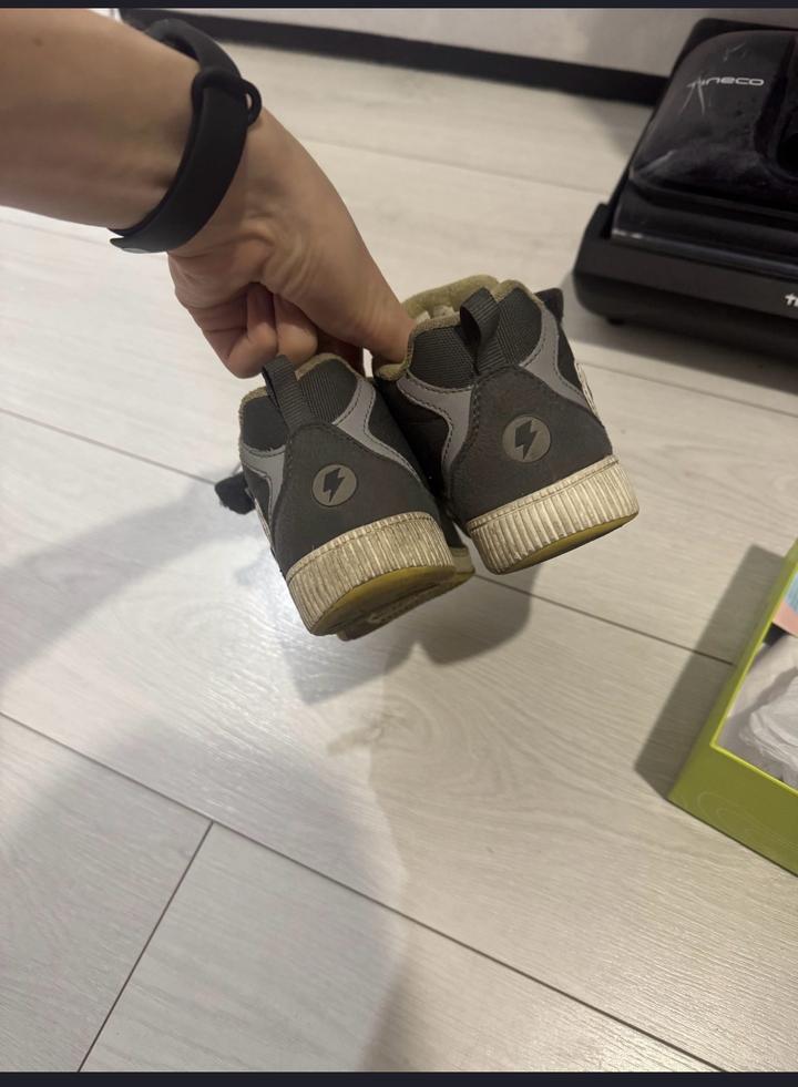 Размер 26, длина стельки 160mm. Брала за 23000. Демисезонные ботинки, изготовлены из технологичного современного текстиля с водоотталкивающей пропиткой. ножки не потеют , не скользит. Подошва легко гнется и не истирается в процессе носки. Мягкий байковый подклад из хлопка сохраняет ноги ребенка в тепле и сухости. Широкая носочная часть . Если нужно могу отмыть хорошо , и внутри отстирать. Артикул: 541339