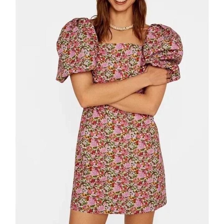 Цветочное платье MANGO, с puff рукавами, на размер хс-с. При желании можно удлинить платье на 4 см Артикул: 541368