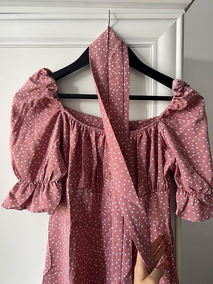 Летнее платье, материал штапель, размер 42-44, абсолютно новый. Длина французская. Спереди есть вырез снизу. С ремешком. Артикул: 541404