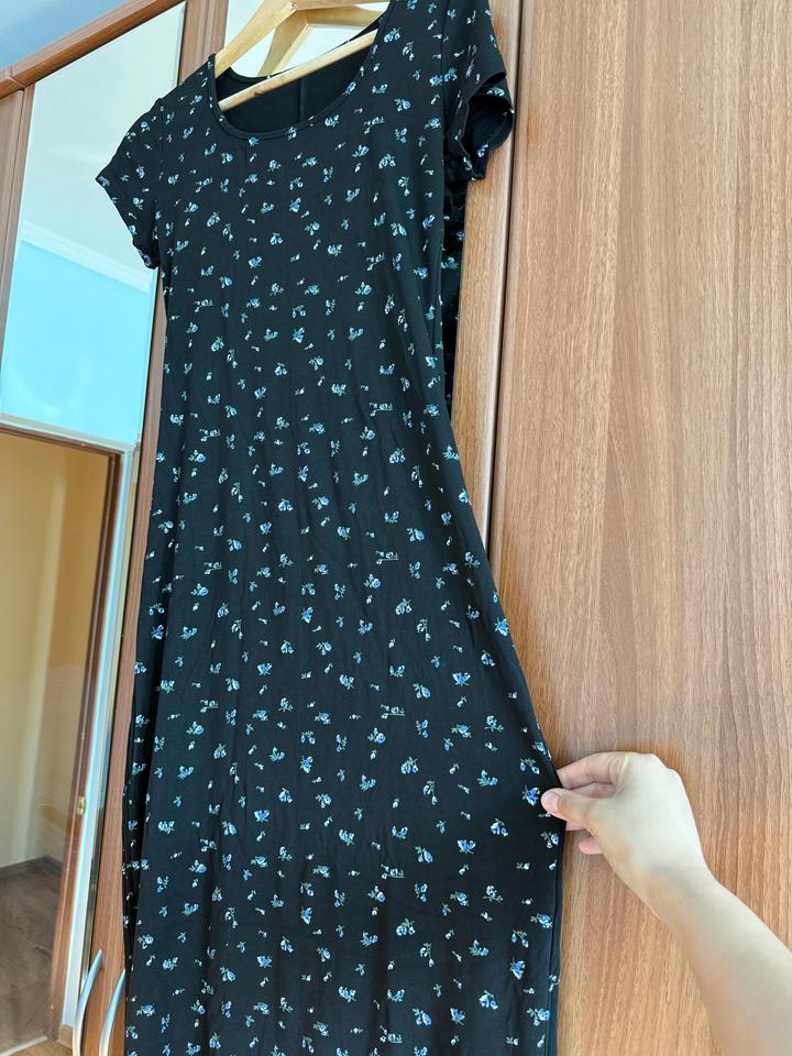 Черное платье миди с цветочками Артикул: 541446