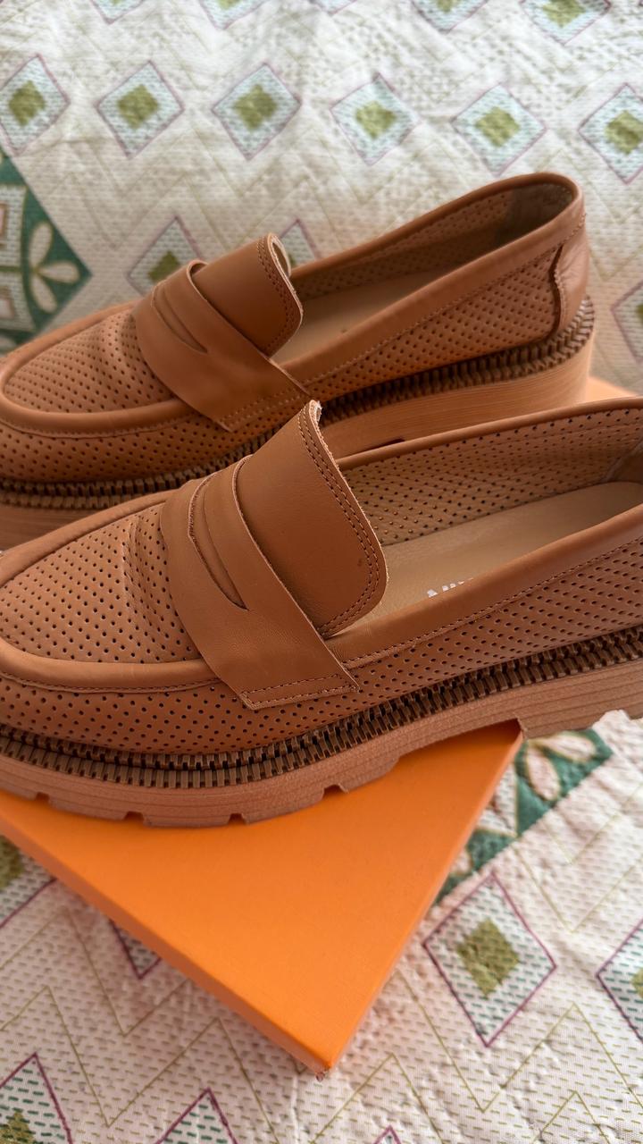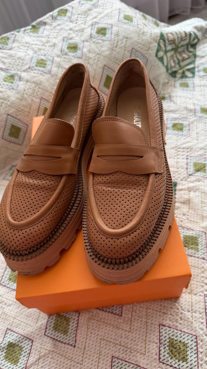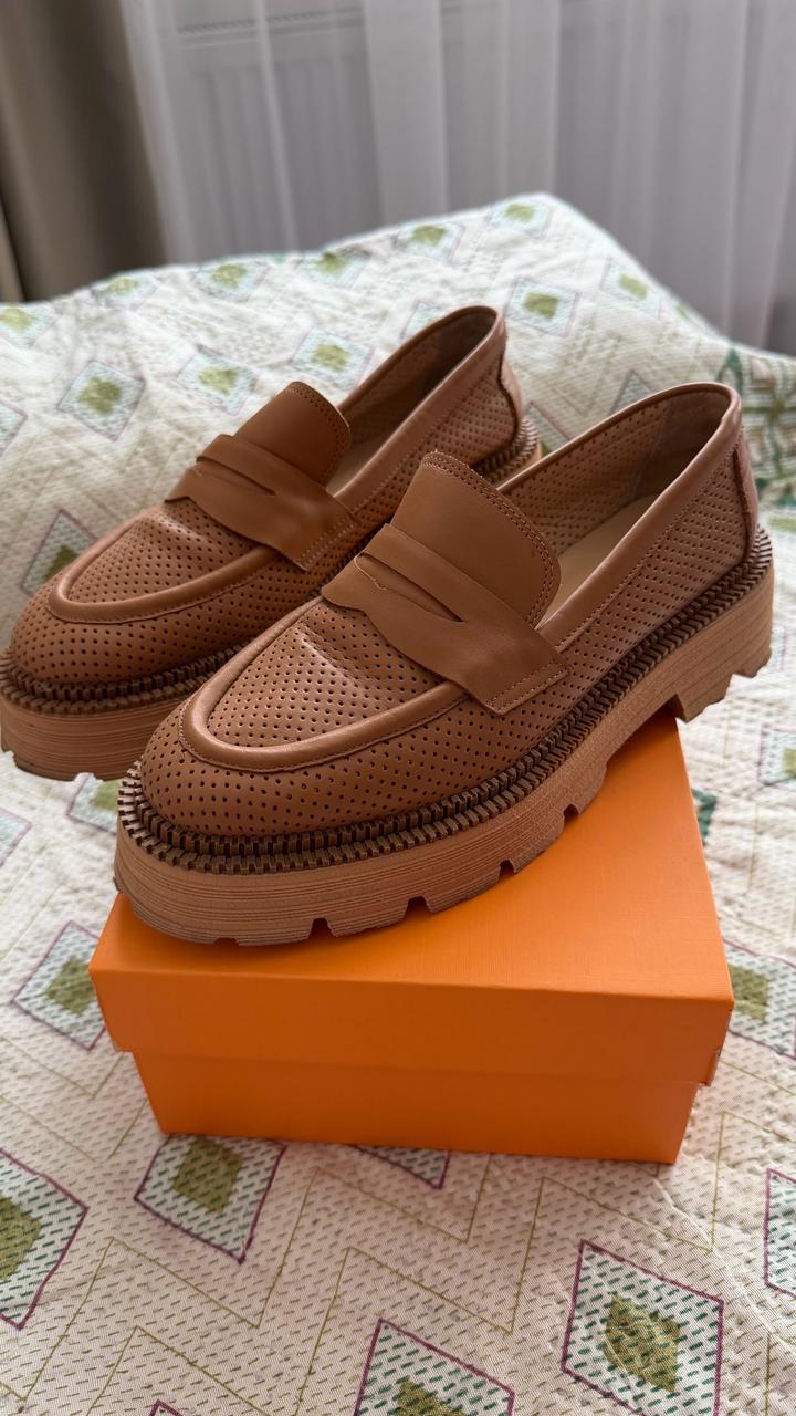Коричневые, лёгкие и удобные, на небольшой платформе. Натуральная кожа, отлично подходят на лето. Носились несколько раз, состояние очень хорошее. Артикул: 541573