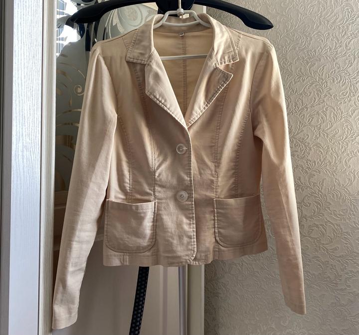 Бежевый пиджак / жакет Стильный и универсальный пиджак в нежном бежевом оттенке. Отлично подойдёт как на каждый день, так и для более классических образов. Лёгкий, комфортный, красиво подчёркивает фигуру. Хорошо сочетается с брюками, джинсами и платьями. Состояние: отличное Артикул: 541614