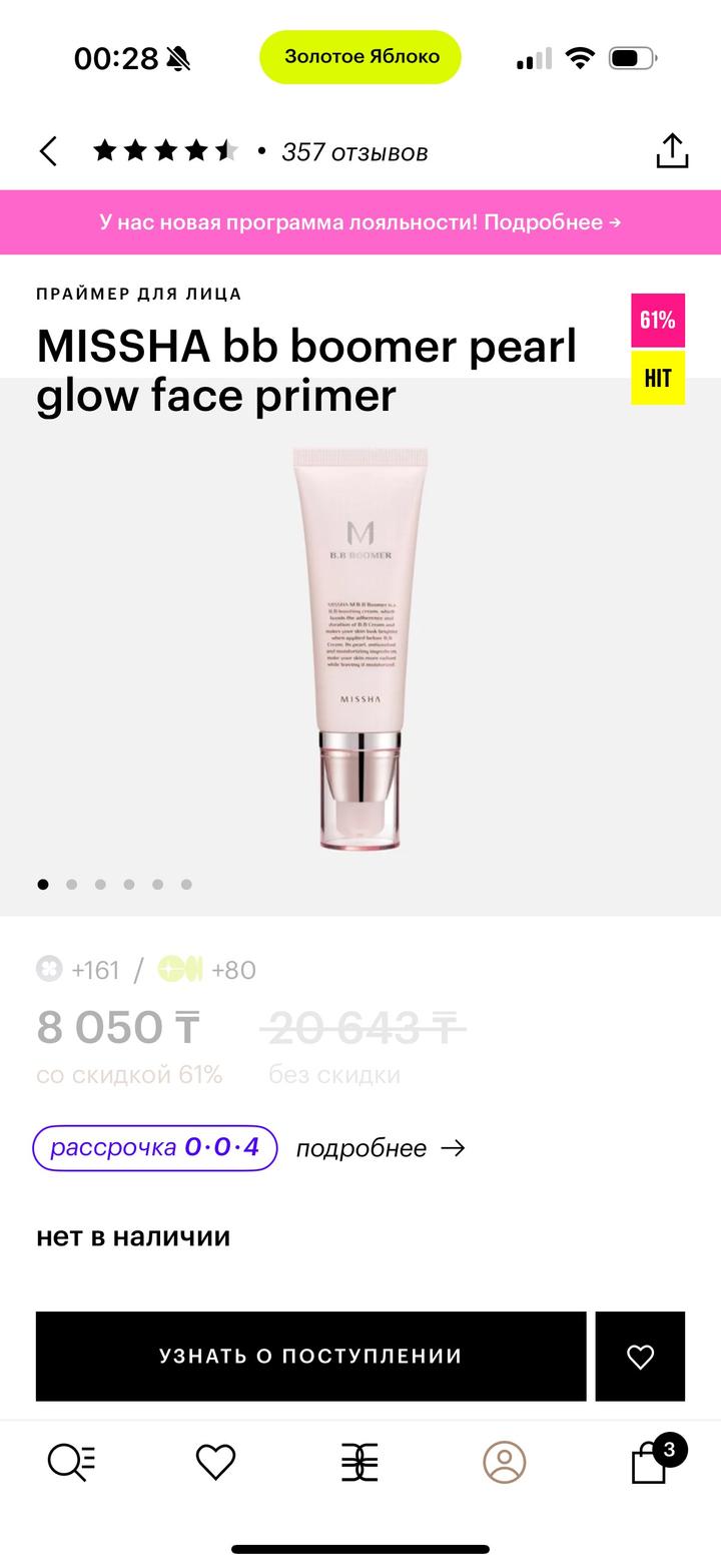 Праймер для лица от Missha, с светчением. Отлично ложится под макияж. Не новый, использовала пару раз, больше половины в тюбике осталось. Артикул: 541623