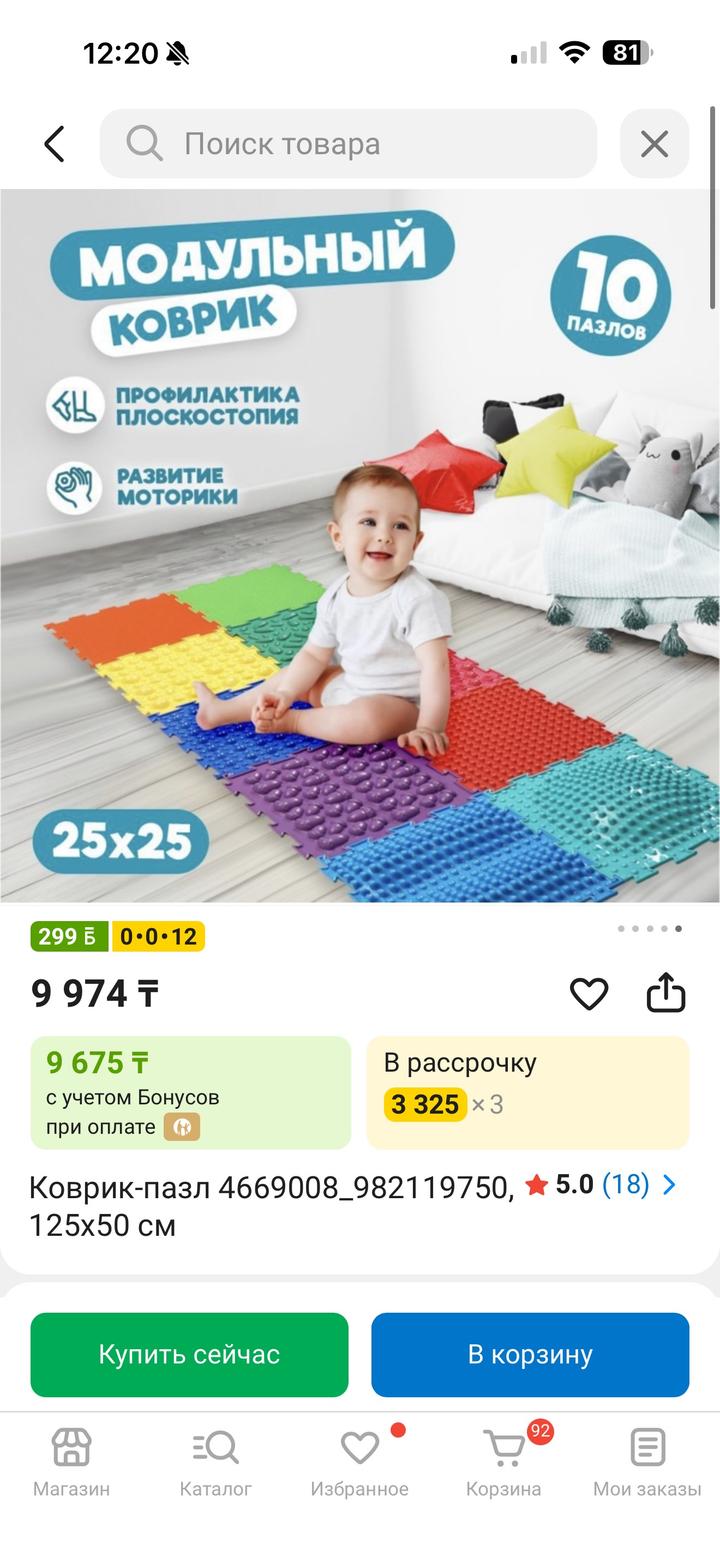 Ортоковрик детский набор из 10шт, состояние идеальное, цена в каспи 10 000, моя цена 6000 Артикул: 541631