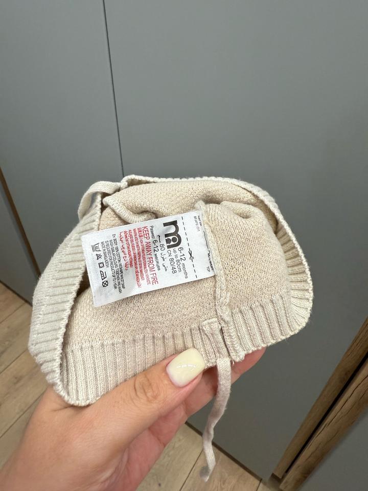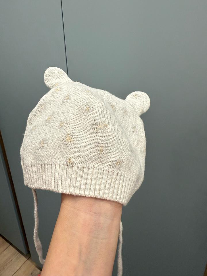 Шапка демисезонная, на рост 80см. Спокойный леопардовый принт. В отличном состоянии. На бирке размер 6-12 месяцев Артикул: 541688