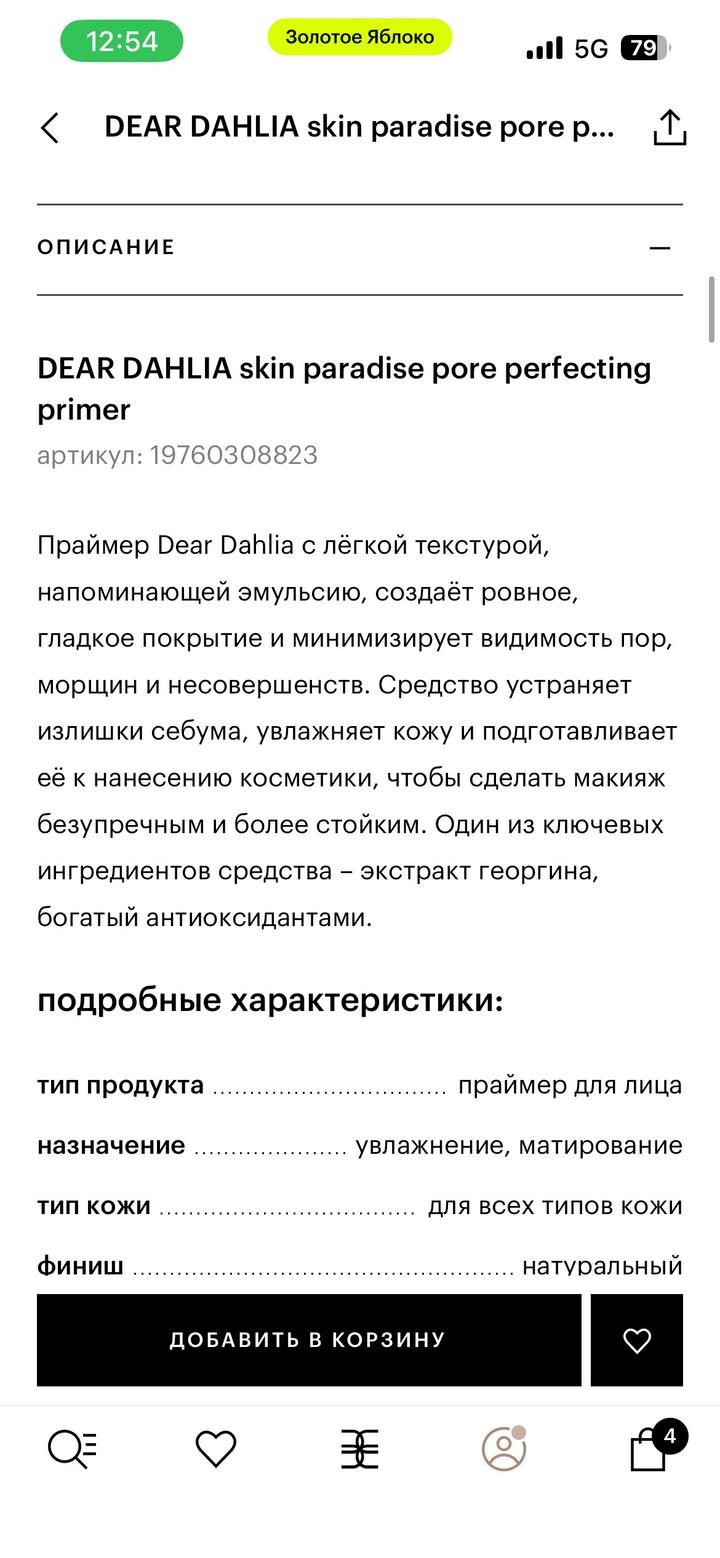 Пользовалась косметикой 3 раза. Мультифункциональный BB-крем со средней степенью покрытия. Делает кожу мягкой и увлажненной, предотвращая обезвоживание. Защищает кожу от вредного воздействия солнца с помощью минеральных фильтров (SPF30) в составе и обладает антиоксидантным эффектом, борясь с признаками преждевременного старения. Праймер Dear Dahlia с лёгкой текстурой, напоминающей эмульсию, создаёт ровное, гладкое покрытие и минимизирует видимость пор, морщин и несовершенств. Артикул: 541690