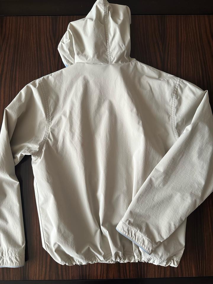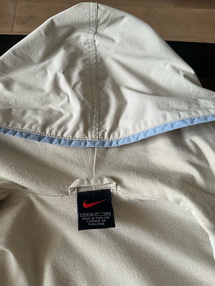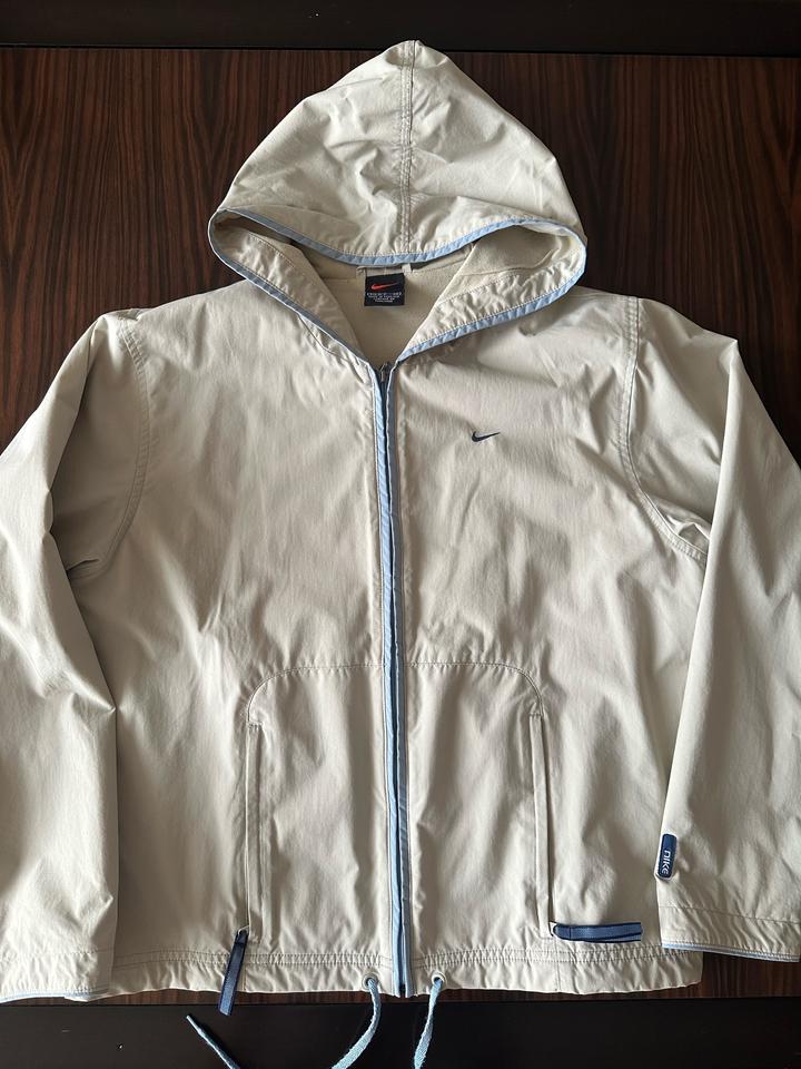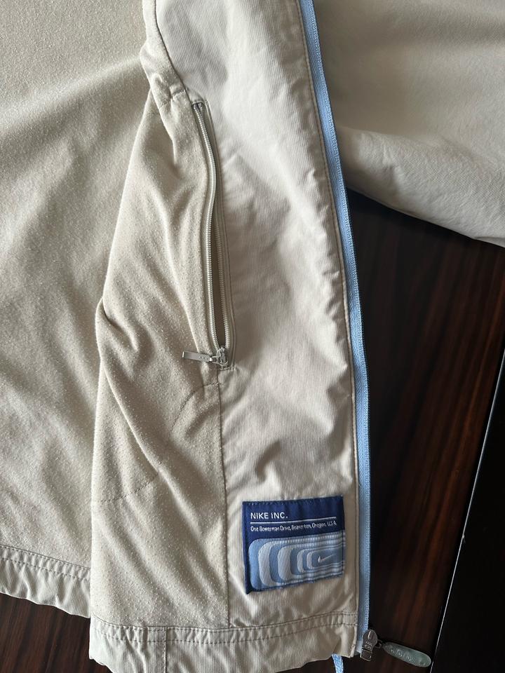 Укороченная ветровка Nike, на подкладе, с шнуром но низу для сборки. Два наружных кармана на замке, один внутренний. Цвет- светлый хаки , с голубой отделкой Артикул: 541728