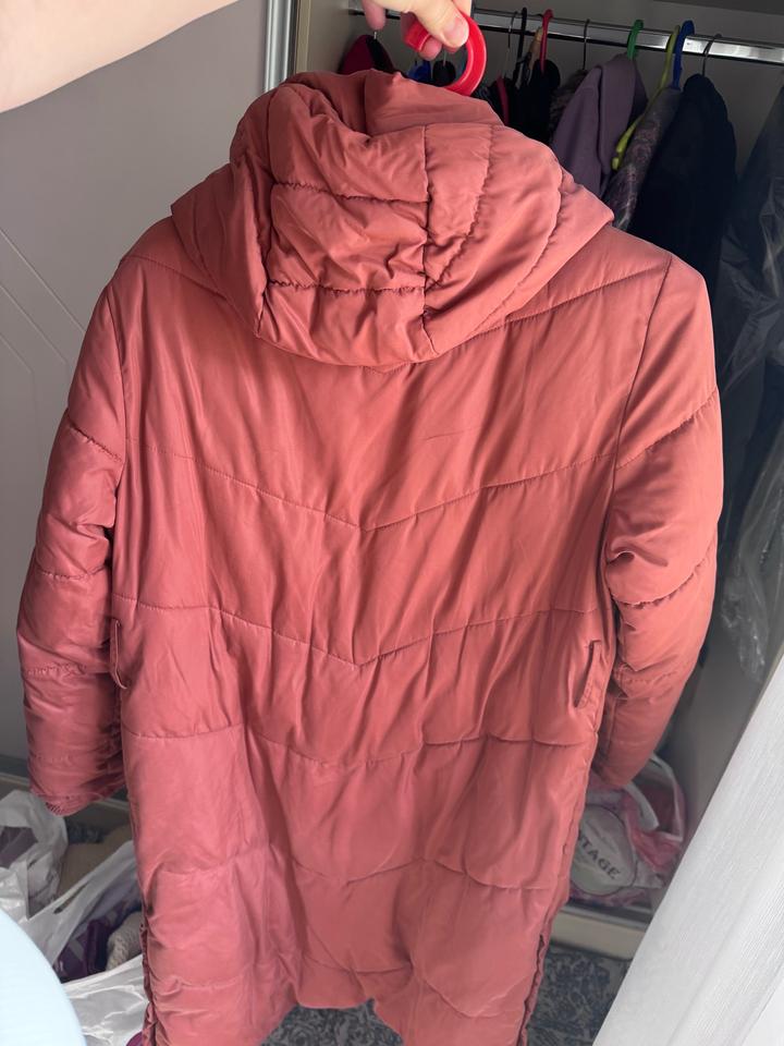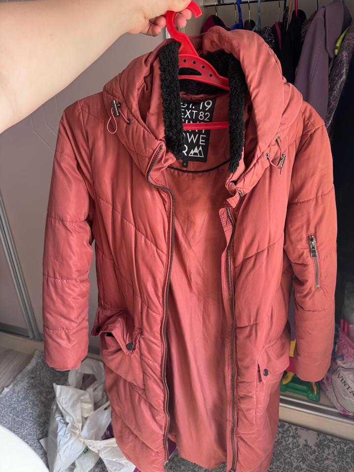 Классная модель зимней куртки, очень удобная и стильная. Отделана качественной фурнитурой. В стильном оттенке. Указан размер 38/44, но она большемерит. Подходит на высоких девушек Артикул: 541733