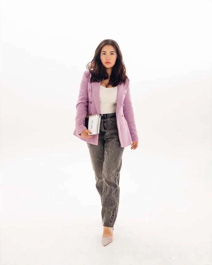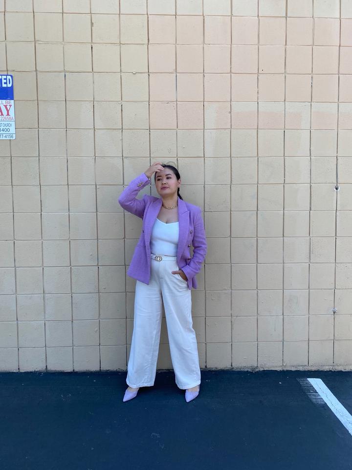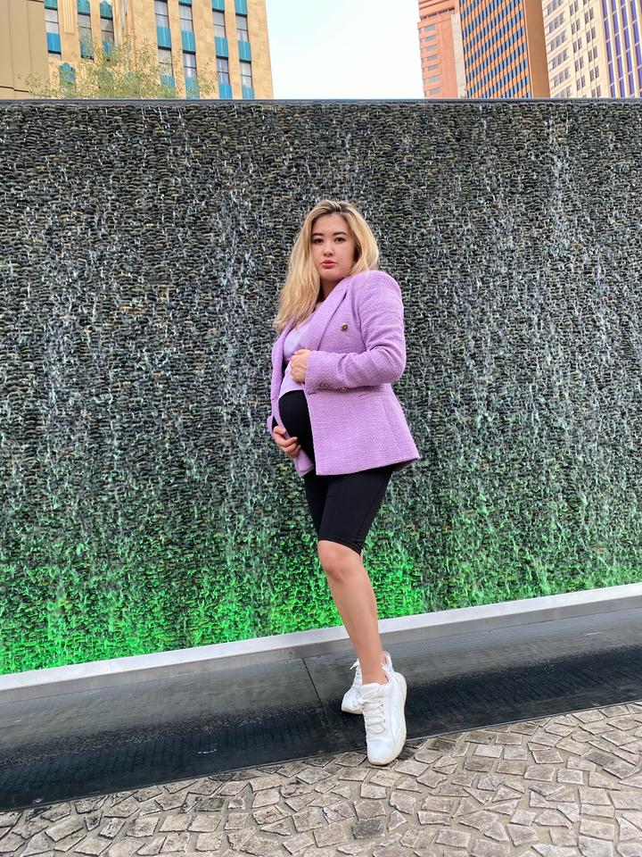 Красивый пиджак 💜 Покупала в Калифорнии когда была в положении Носила когда родила тоже Сейчас он мне маленький 😅 Уже год висит в шкафу Очень красивый пиджачок Размер М Артикул: 541889