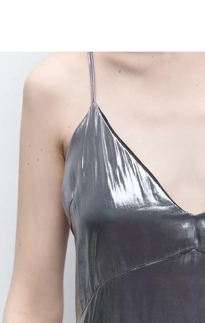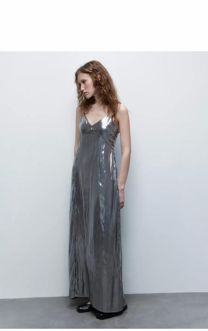 Блестящее платье серебристого цвета в стиле "Эйфории”. Носи платье с лодочками на каблуке или массивными ботинками. Накинь сверху костюмный пиджак или косуху из искусственной кожи. Идеальный вариант на выпускной бал- Размер на модели: S Рост модели на фото 1+7### ### ## ##-60-89 Материал подкладки полиэстер Вид застежки молния Артикул: 542031