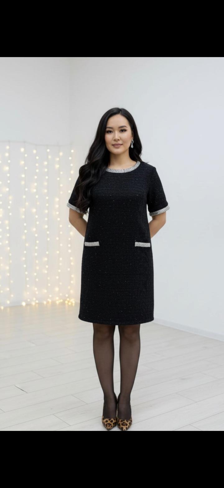 Твидовое черное платье размер XL. Сидит свободно и легко. Не обтягивает. Артикул: 542044
