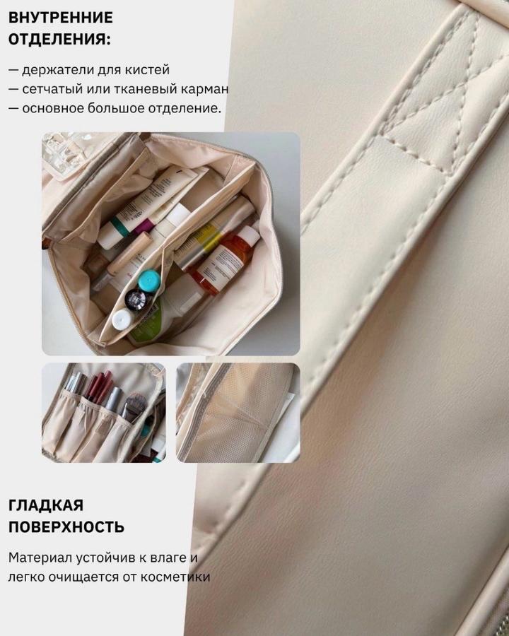 Преимущества: — большая вместимость — удобная организация косметики - широкое открытие на 180° — стильный минималистичный дизайн — подходит для путешествий и ежедневного использования.Широкое раскрытие на 180° обеспечивает удобный доступ ко всему содержимому. Внутри есть отдельные держатели для кистей и дополнительный карман для мелких предметов. Артикул: 542111