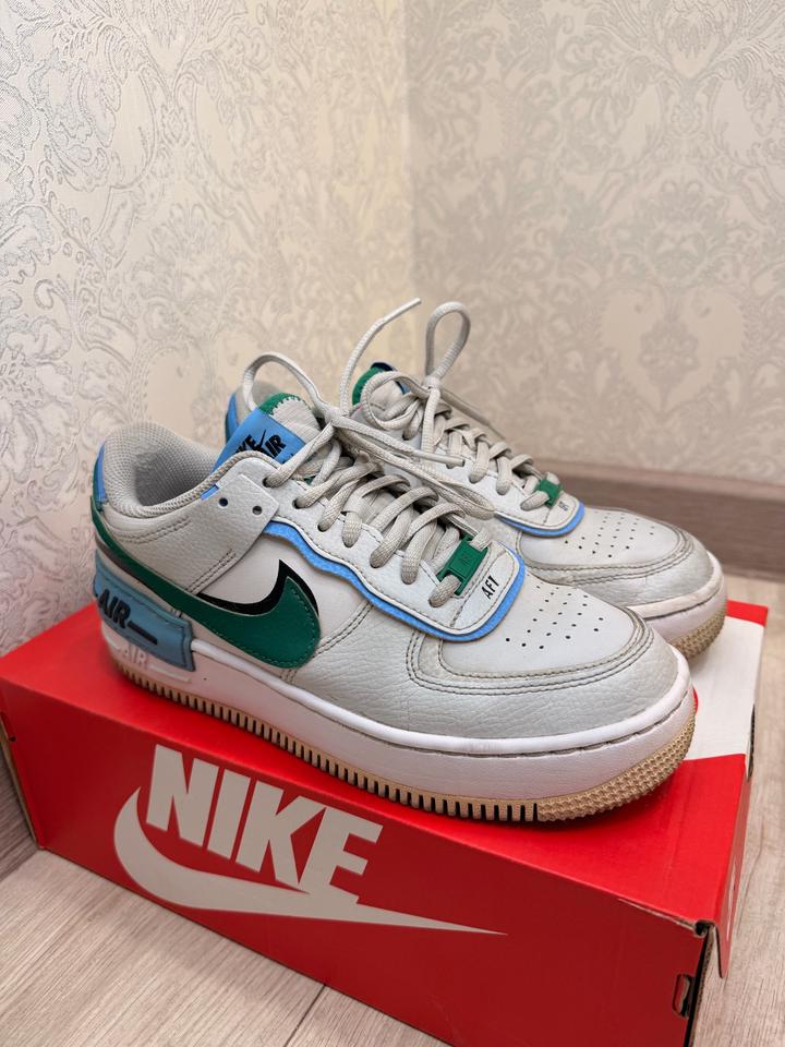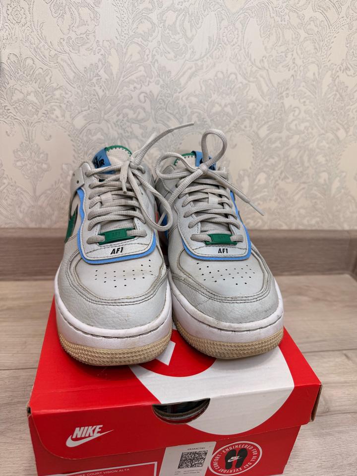 Женские кроссовки Nike Air Force 1 Shadow , серый/голубой/зеленый цвет, натуральная кожа, состояние 3.5/5, мятая кожа, есть небольшие трещины Артикул: 542130
