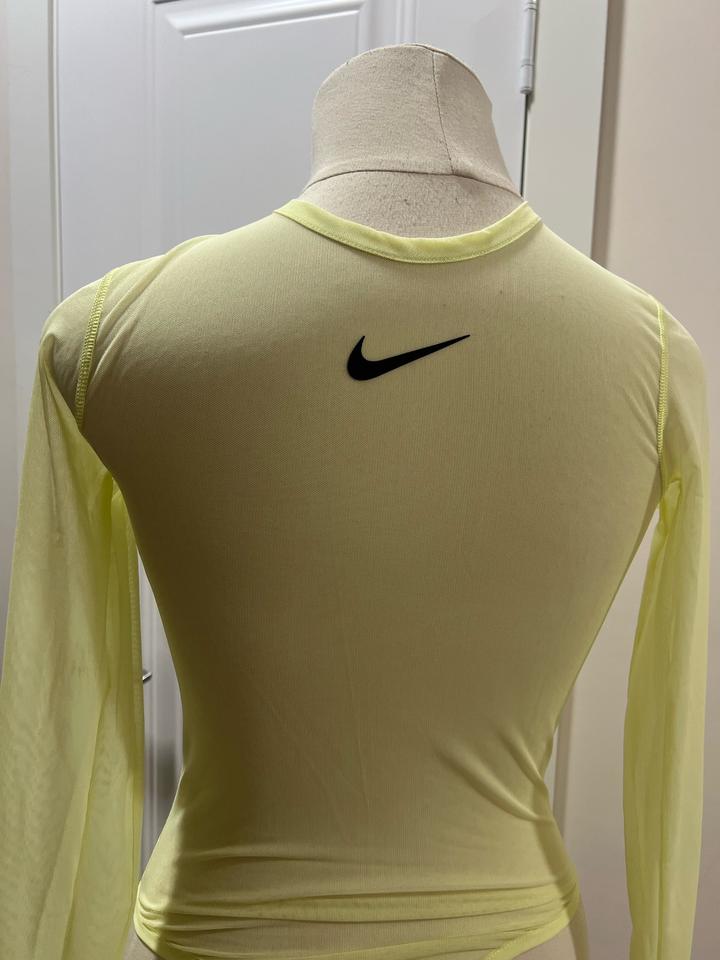 Боди Nike, оригинал, размер S. Неоново-зеленый цвет, выполнено в сетку — стильное и яркое решение для спорта. Состояние идеальное, явных дефектов нет. Очень комфортное при тренировках, а сверху можно добавить майку или топ для повседневного образа. Артикул: 542149