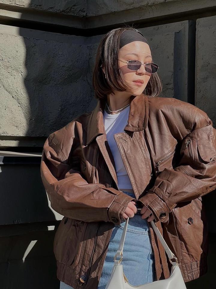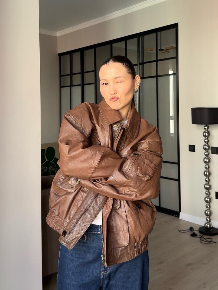 Винтажная кожаная курткаM