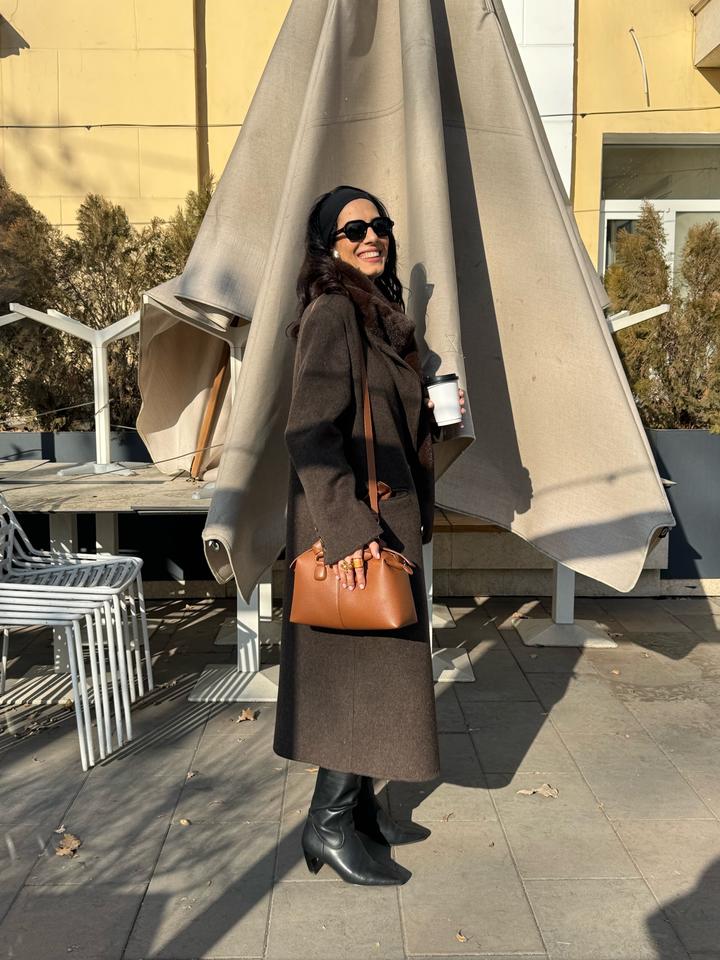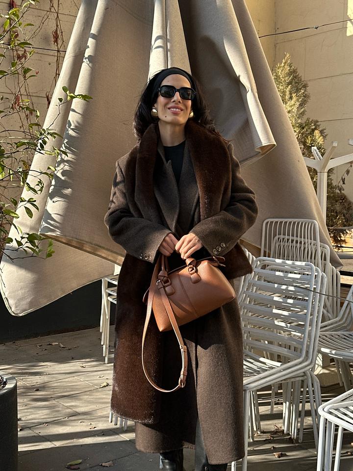 Шерстяное стильное пальто в шоколадном цвете. Размер S Артикул: 542196