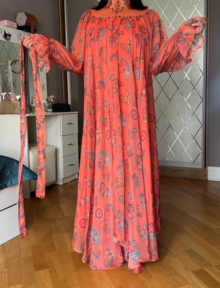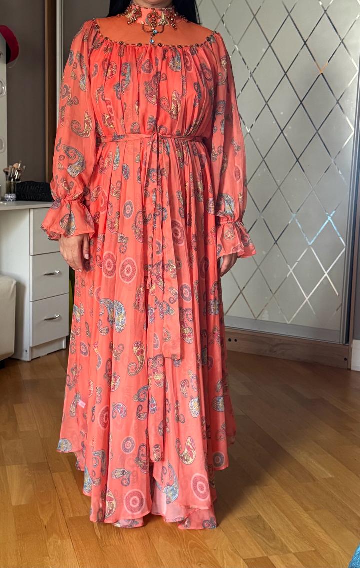 Турецкое платье. Очень красивый дизайн. Подходит на размер 48-50. Материал: шифон. Есть пояс, можно носить как и с поясом, так и без. Брали на той, один раз только носили. Новое Артикул: 542212