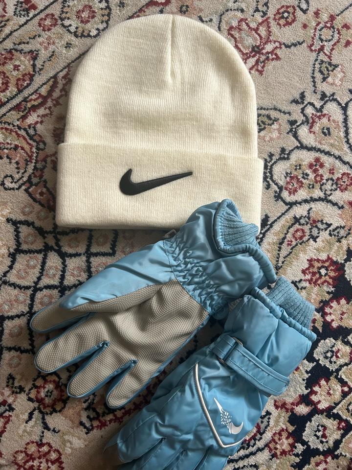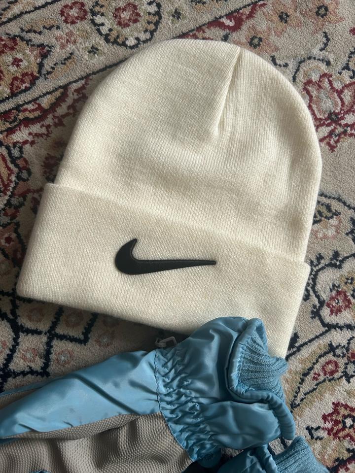 1. Шапка Nike (Бини) • Цвет: Молочный / Слоновая кость (off-white). Очень освежает и подходит под любую куртку. • Бренд: Классический Nike с вышитым черным свушем. • Материал: Плотная вязка, хорошо тянется, но держит форму. Очень теплая, закрывает уши. 2. Горнолыжные перчатки • Цвет: Нежно-голубой со вставками. • Функционал: * Непродуваемая и водоотталкивающая ткань. • Специальное покрытие на ладонях для хорошего сцепления (удобно держать телефон или лыжные палки). • Регулируемый ремешок на запя Артикул: 542217