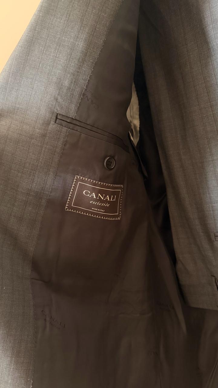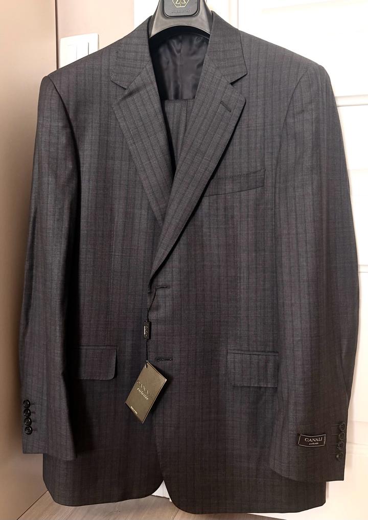 Продам Новый костюм Итальянского люкс бренда CANALI. Цвет: насыщенный серый в вертикальную полосу. Материал: шерсть 100% Размер 52. Новый костюм, все бирки на месте. Приобретался в Италии. Артикул: 542233