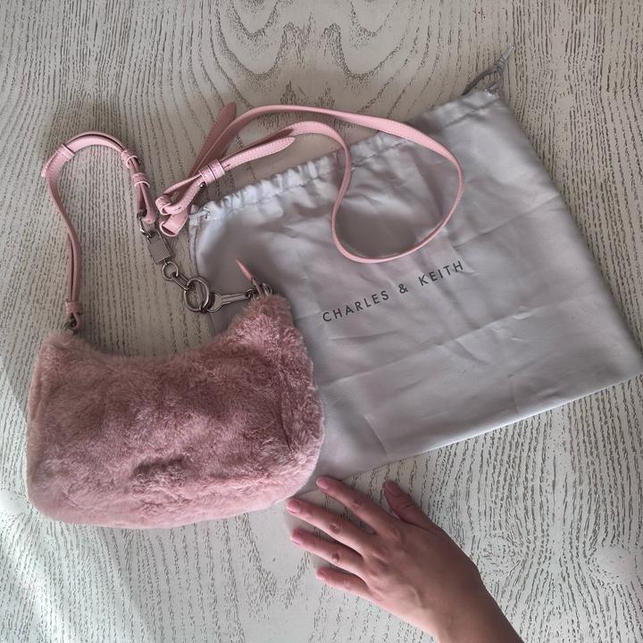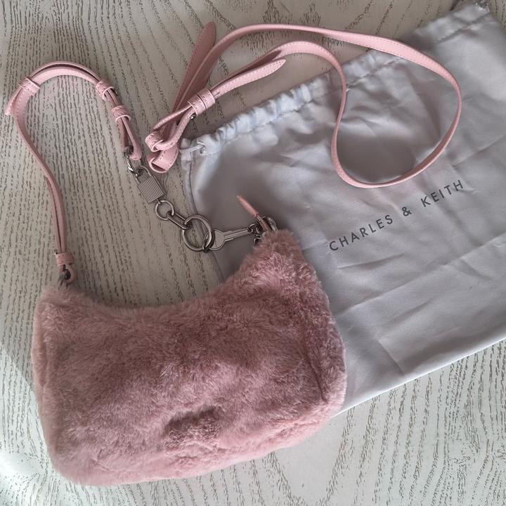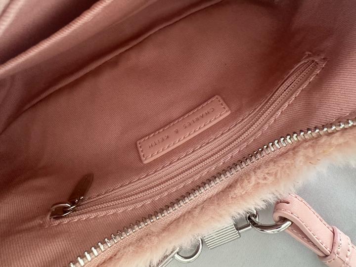 Пыльно розовая, меховая сумка от бренда Charles & Keith. Имеется пыльник и дополнительный ремешок. Оригинал. Вся фурнитура целая, сумка в отличном состоянии. Артикул: 542247