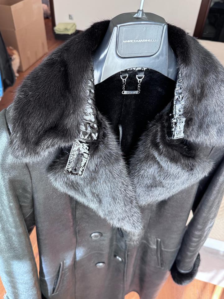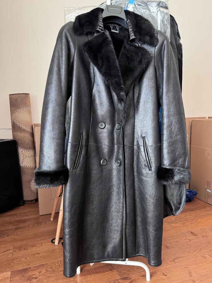Дублёнка в отличном состоянии. Чёрная, лазерное покрытие, воротник из норки, цвет чёрный бриллиант, натуральная. Покупали в салоне «Снежинка», пр-во Италия, разм. 40 (44-46) Артикул: 542260
