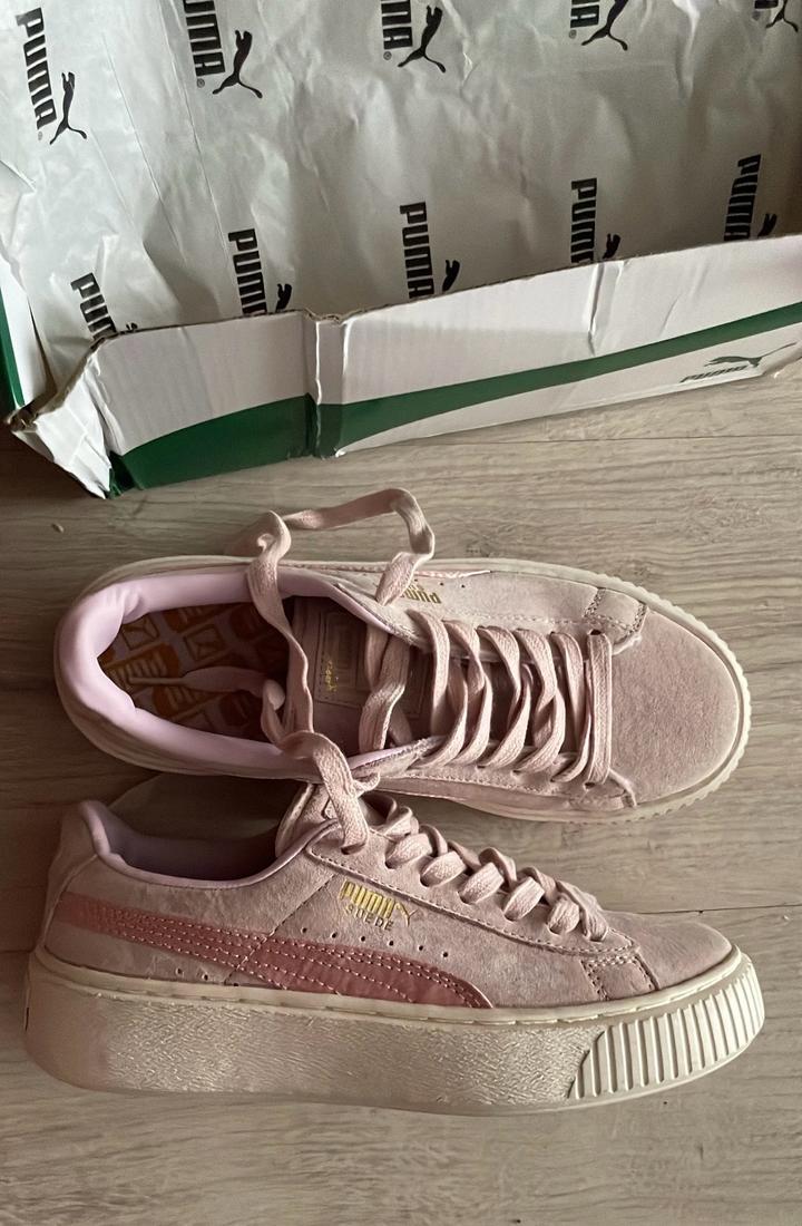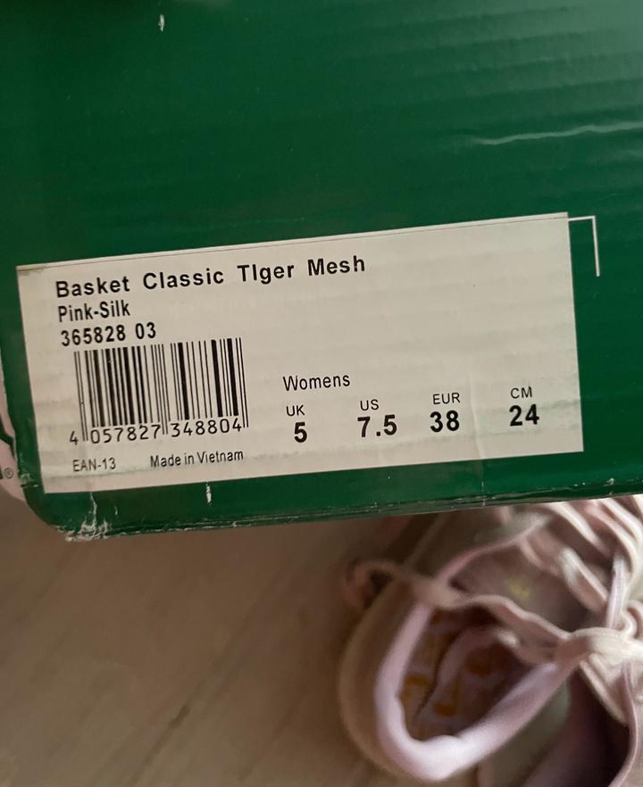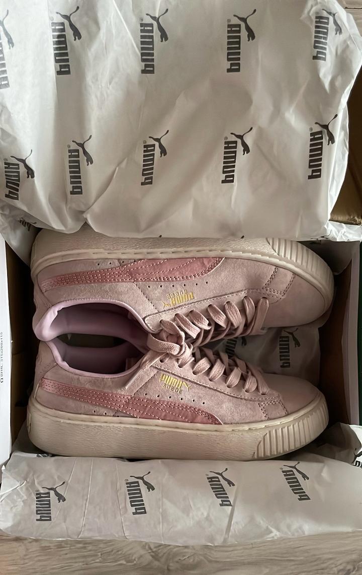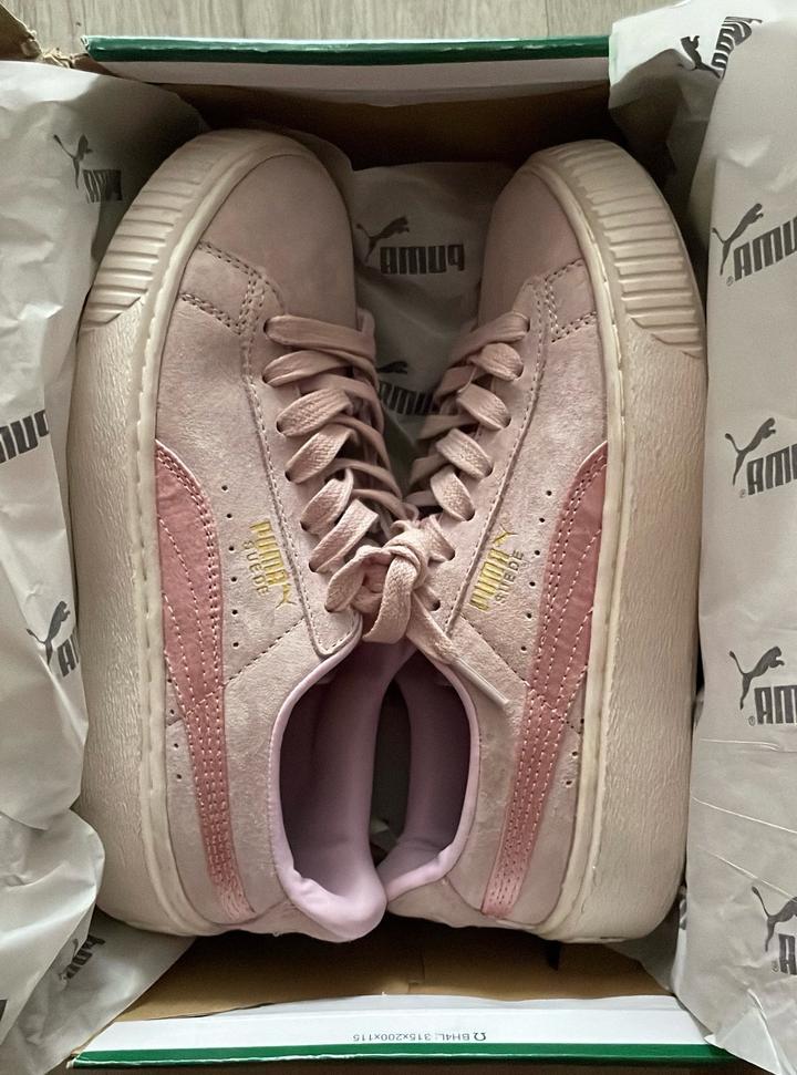 Брала на подарок Причина продажи:размер не подошел,померили один раз Размер стельки 24см. женские кроссовки Puma Wmns Suede Platform в расцветке «Pink Satin» (розовый сатин). Основные характеристики модели: Название на этикетке: Basket Classic Suede Platform Артикул (SKU): 365828 03. Цвет: Pink-Silk (Розовый шелк) / Silver (Серебристый). Артикул: 542299