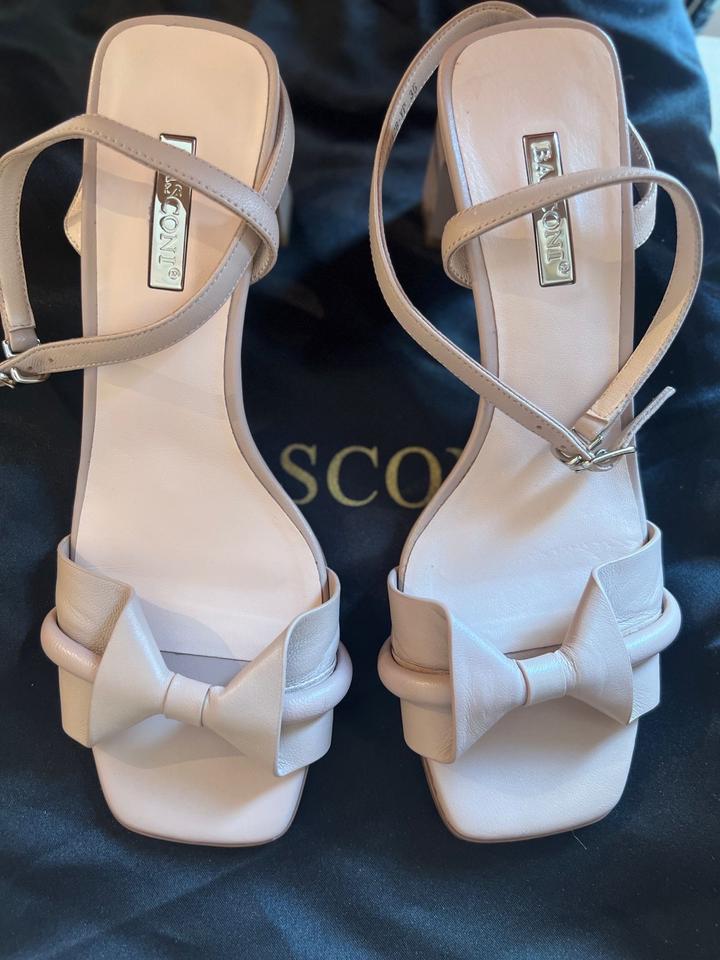 Женские босоножки итальянского бренда Basconi. Модель из натуральной кожи нежно-розового или бежевого цвета, отличительной чертой которой является декоративный бант на мысе и тонкий ремешок на щиколотке. Каблук: Средний устойчивый каблук (около 6 см.) Натуральная кожа (верх, подкладка и стелька). Размер 35, большемерит, подойдет на 36-37 размер. Артикул: 542301