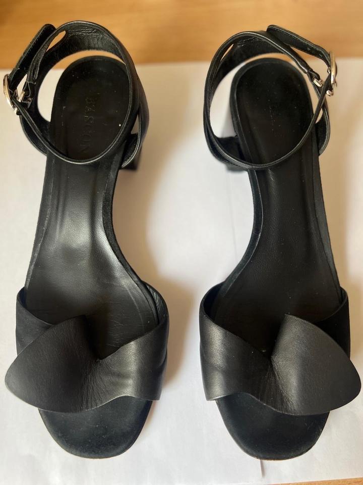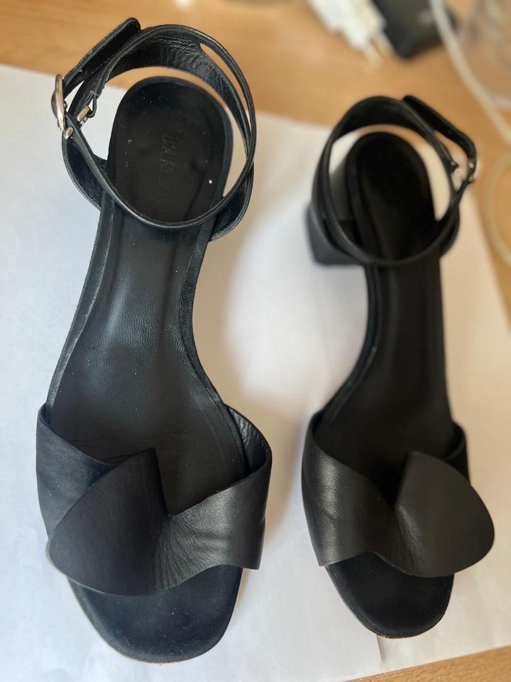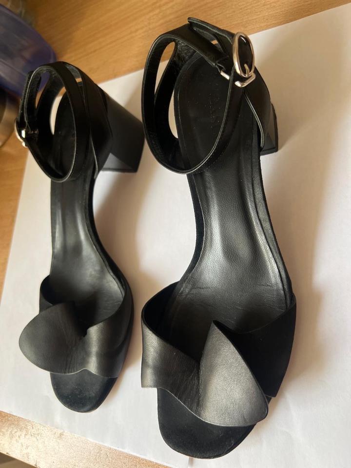 Черные босоножки фирмы Basconi, натуральная кожа с замшевыми вставками, устойчивый каблук около 5 см. Размер 36, большемерит подходит на 37 размер. Артикул: 542310