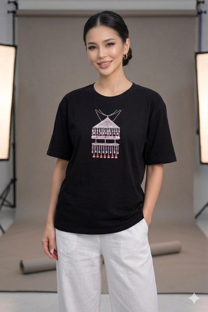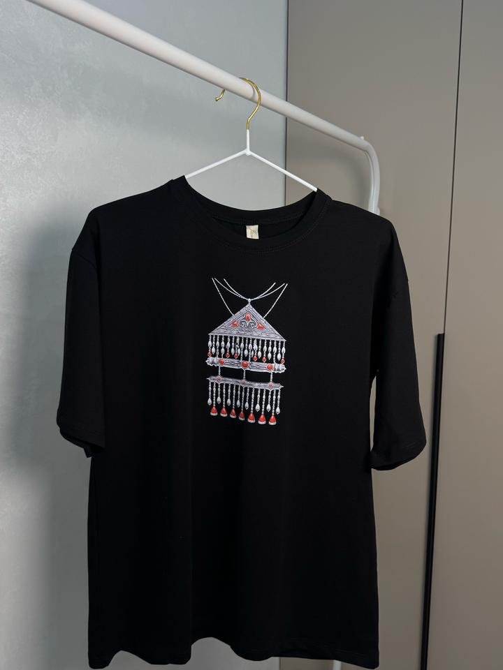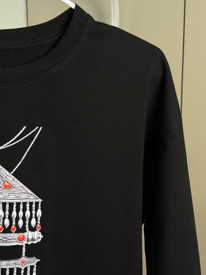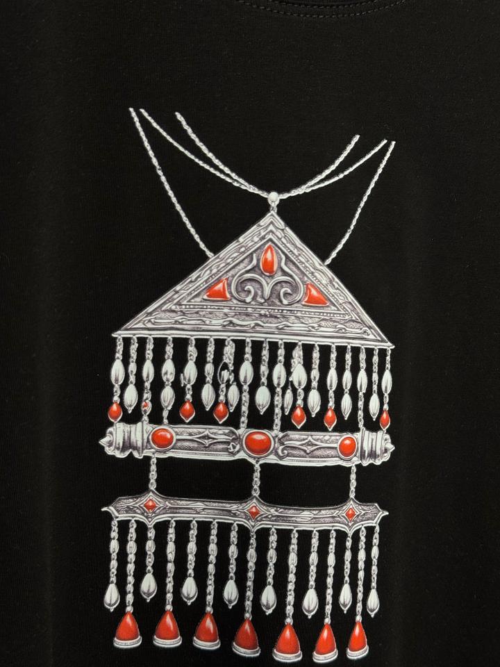 Футболка с этно-орнаментом и декоративной подвеской в казахском стиле Артикул: 542338