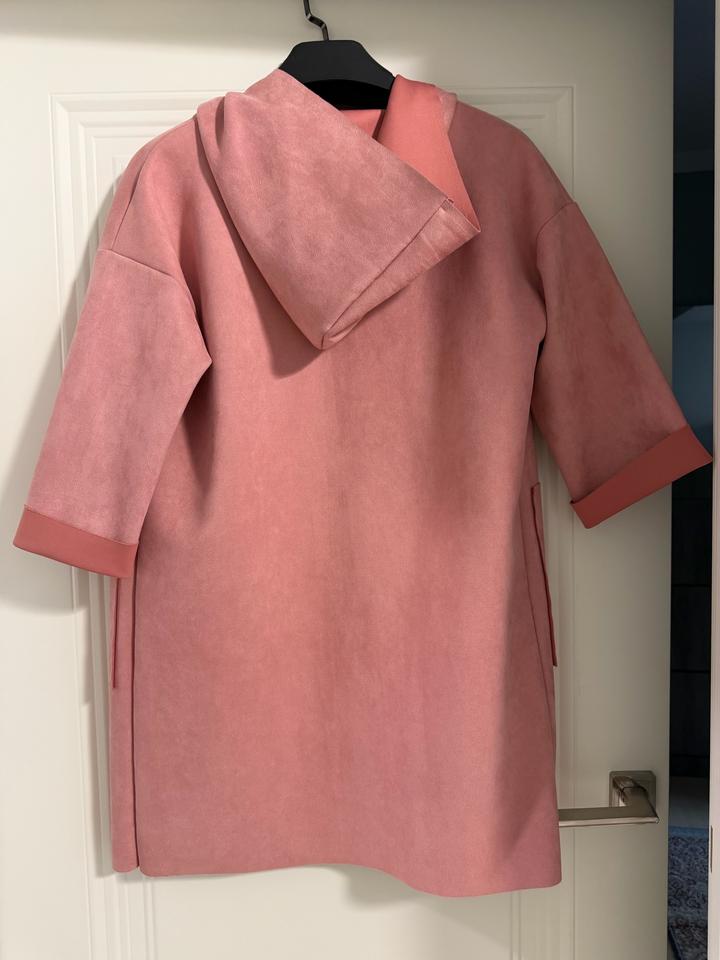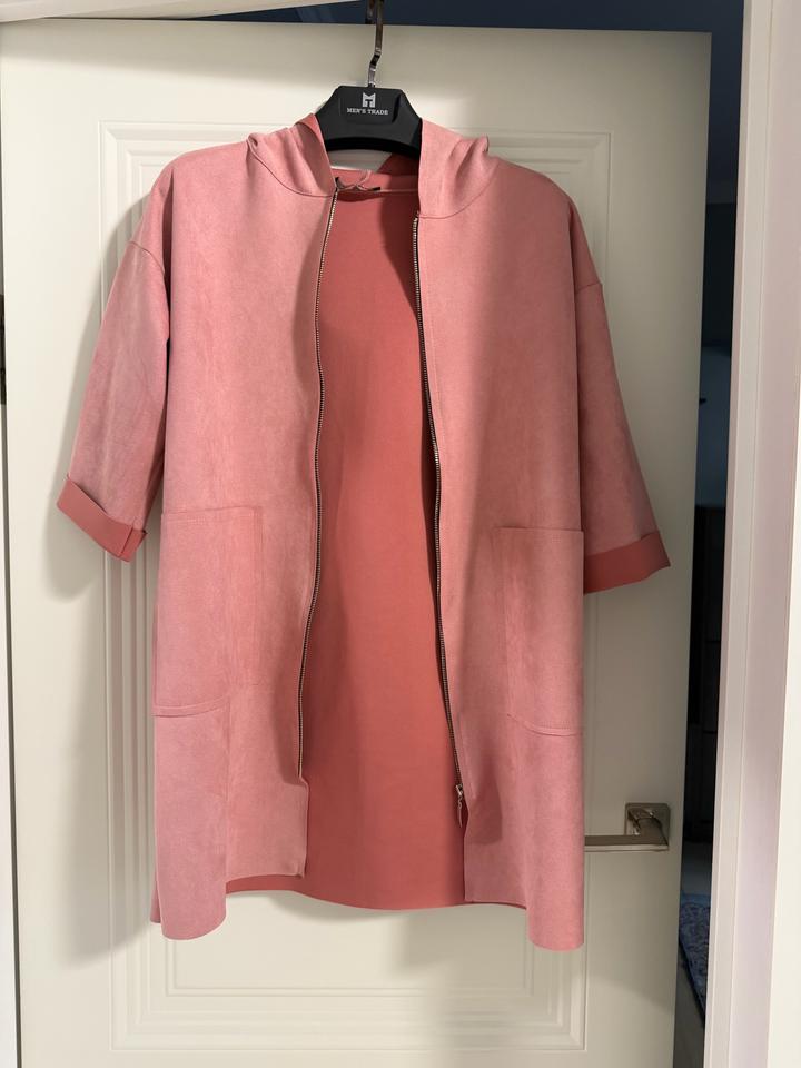 Стильный кардиган в нежном пудрово-розовом оттенке 💗 Легкий кардиган свободного кроя с коротким рукавом и капюшоном выполнен из мягкого, приятного на ощупь материала (под замшу). Модель дополнена удобной молнией и вместительными накладными карманами Артикул: 542355