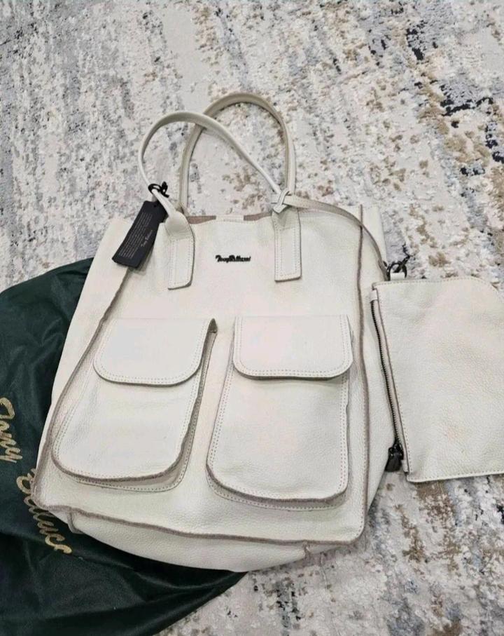 Шопперы из натуральной телячьей кожи, в комплекте с небольшой косметичкой. Производство Турция. Молочно-бежевая и чёрная в наличии. Вмещает формат А4. Пыльник и пакет в комплекте. Новые, с этикеткой. Артикул: 542365
