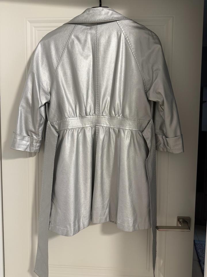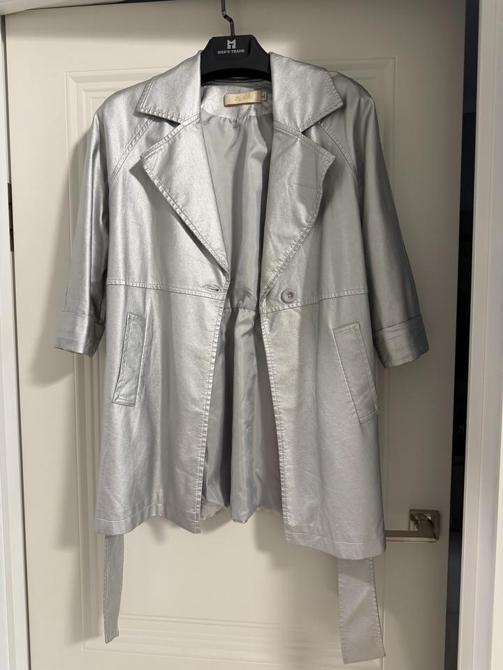 Легкий плащ свободного кроя -актуальный серебристый цвет с эффектом металлик -универсальный свободный крой -пояс для регулировки силуэта практичные карманы -легкий и комфортный материал Артикул: 542366