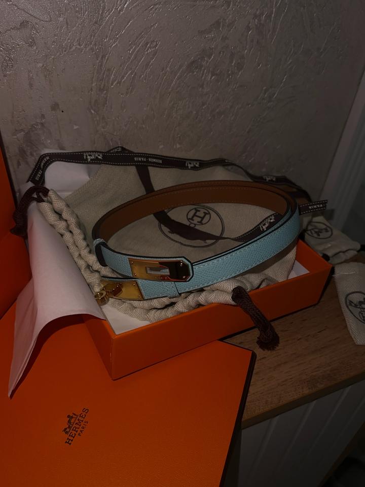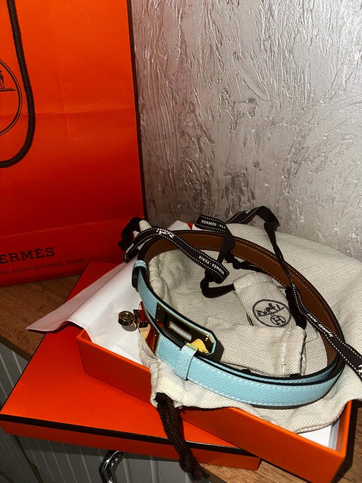 Самый дорогой цвет в линейке. Очень сложно его достать если нет знакомых байкеров. И эрме не делают постоянную линейку с голубыми ремнями. Обычно их не словить. Дарили через байера в Милане. Фурнитура золотая, Kelly 18 belt. Покупали за 2к евро. Коробка и защита всё есть. Состояние отличное Артикул: 542375