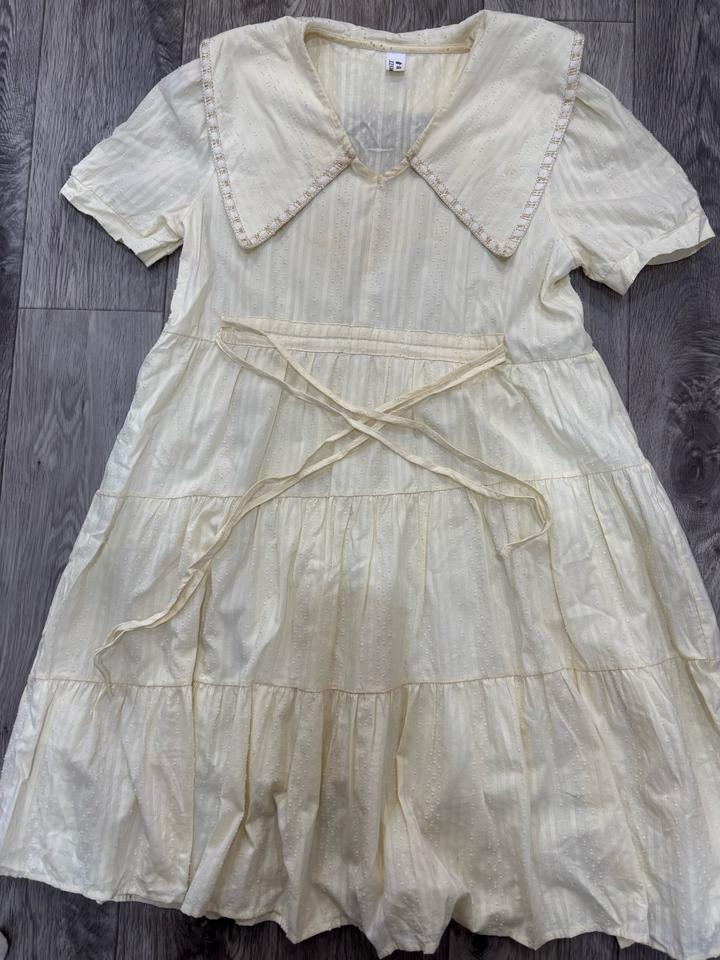 Лёгкое женственное платье светлого оттенка с поясом. Красиво подчёркивает талию, приятная ткань. Подойдёт на лето или на выход. Состояние хорошее.Подойдёт на S–M, рост примерно 150–165 см Артикул: 542417