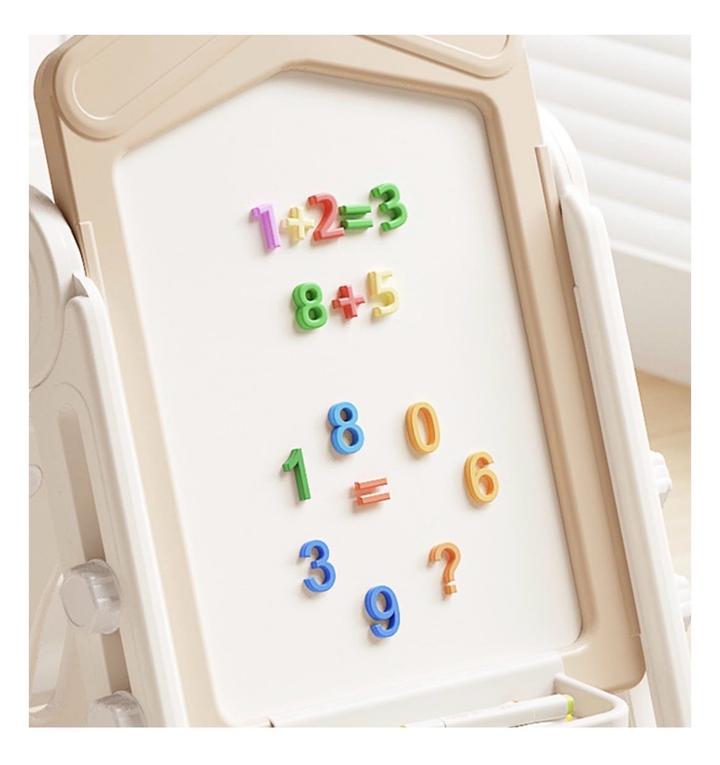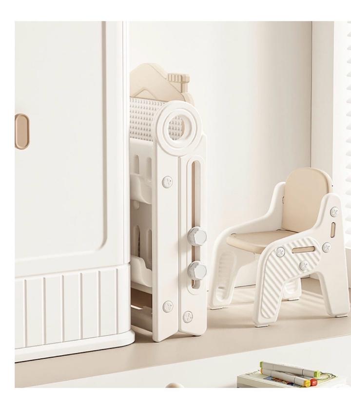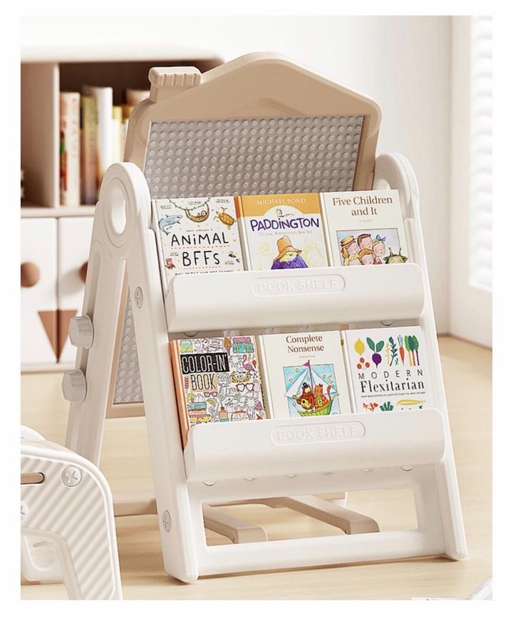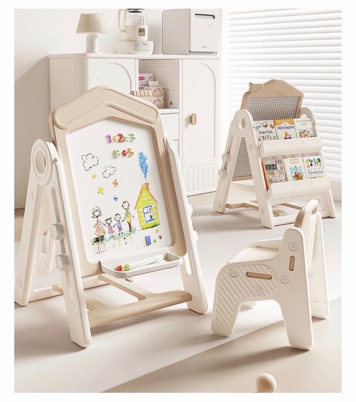 Детский набор 3-в-1: двусторонняя доска для рисования (маркер/мел), книжная полка и удобный стульчик. Компактный, устойчивый, безопасный пластик, приятный дизайн. Отлично подходит для творчества и развития малыша. Артикул: 542432