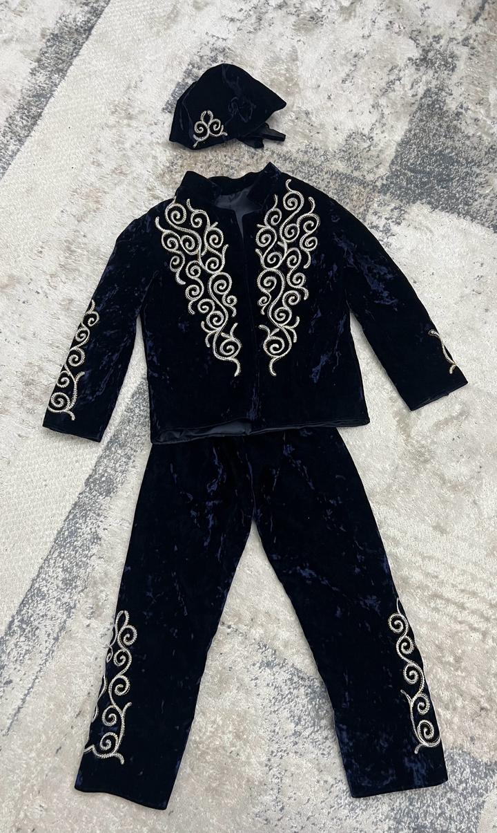 Казахский национальный костюм на мальчика 5-6 лет. Темно синий цвет Артикул: 542436