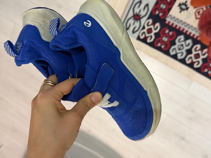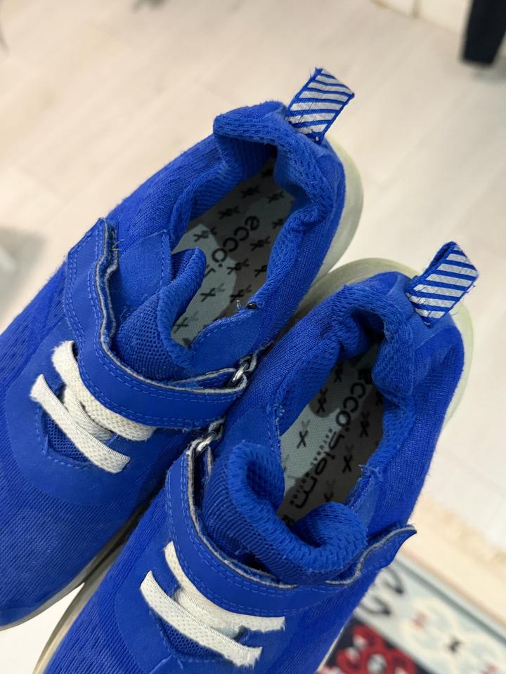 Кроссовки 32 размер, Ecco , качество шикарные . Эти маленькие стали сын снова выбрал эту же модель но черные купил. Легко надевать , без шнурков Артикул: 542609