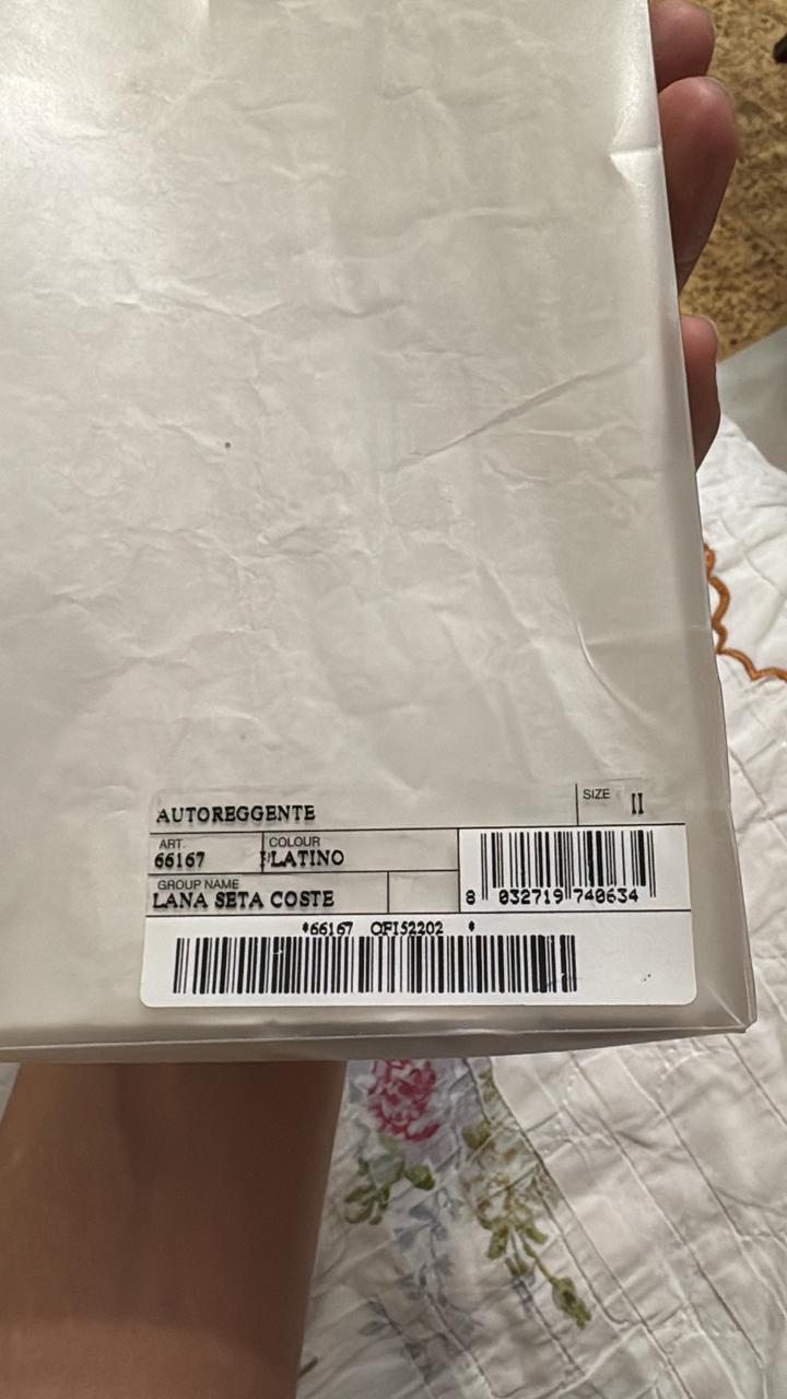 ∙ Бренд: Prada ∙ Тип: Autoreggente (чулки на поясе / stay-ups) ∙ Артикул: 66167 ∙ Цвет: Platino (платиновый/бежевый) ∙ Состав: Lana Seta Coste — шерсть и шёлк Артикул: 542691