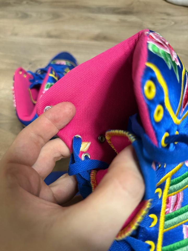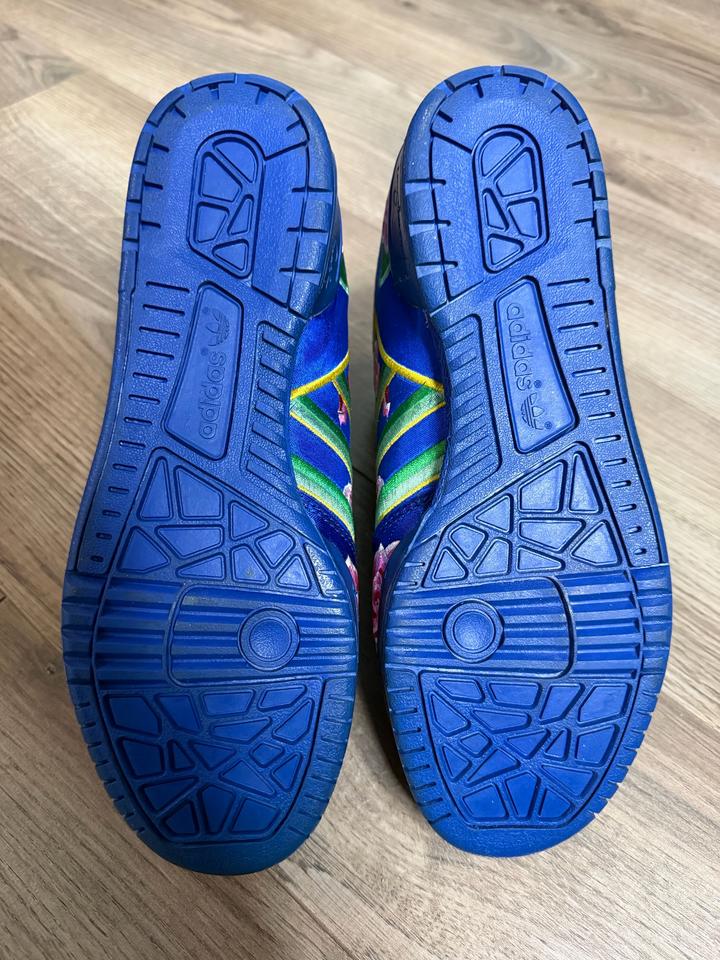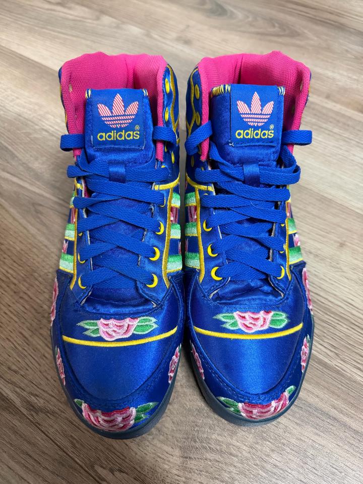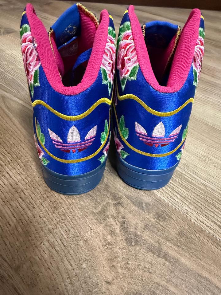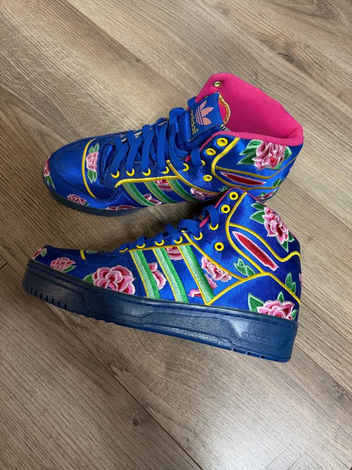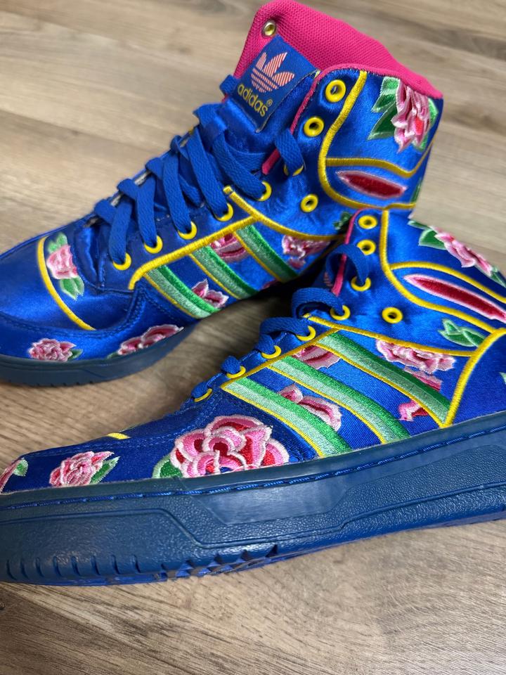 Редкая и очень эффектная пара из коллаборации Jeremy Scott x adidas Originals. Легендарный силуэт , выполнен в ярком восточном стиле — насыщенный синий верх, вышитые цветочные элементы и акценты в духе Chinese New Year. Пара реально выделяется, очень узнаваемая и коллекционная модель. Идеально для тех, кто любит архивные и необычные кроссовки. Артикул: 542697