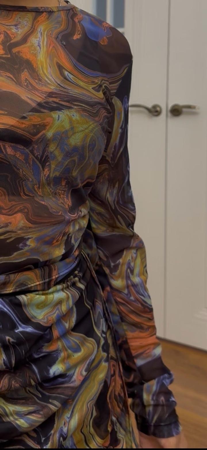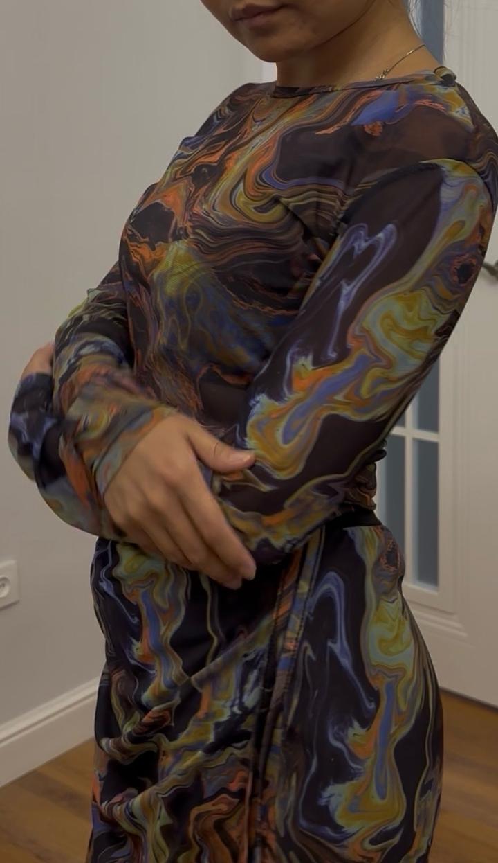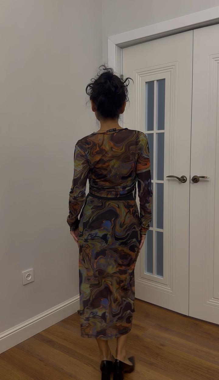 Сеточный костюм с принтом: юбка и топS/M