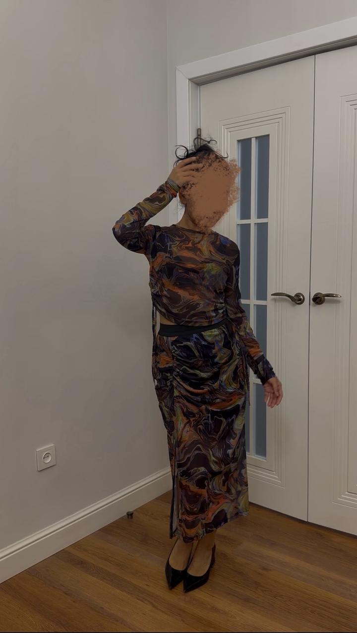 Стильный костюм из сеточной ткани 🔥 Состоит из приталенной юбки и топа с завязками по бокам. Полупрозрачный, красиво подчеркивает фигуру, смотрится эффектно. Можно носить вместе или раздельно. Производство Турция. Состояние: отличное Артикул: 542757