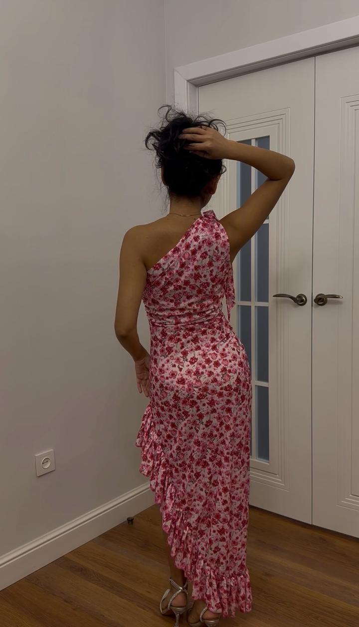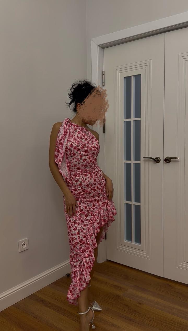 Эффектное летнее платье на одно плечо 💕 Нежный цветочный принт, красиво подчеркивает фигуру. Асимметричный крой с разрезом и воланами делает образ женственным и привлекает внимание. Отлично подойдет на вечер, свидание или мероприятие, пляжный отдых. Состояние: отличное Артикул: 542761