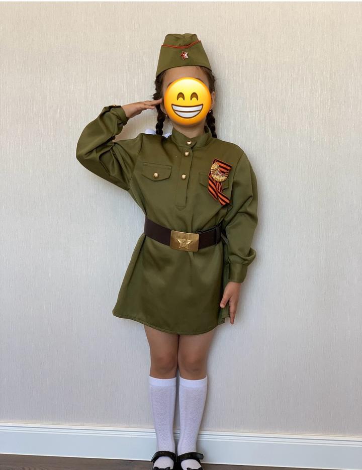 Детское платье в военной тематике, размер 122. На фото девочке 7 лет. Надели 1 раз. пилотка ремень в комплекте Артикул: 542802