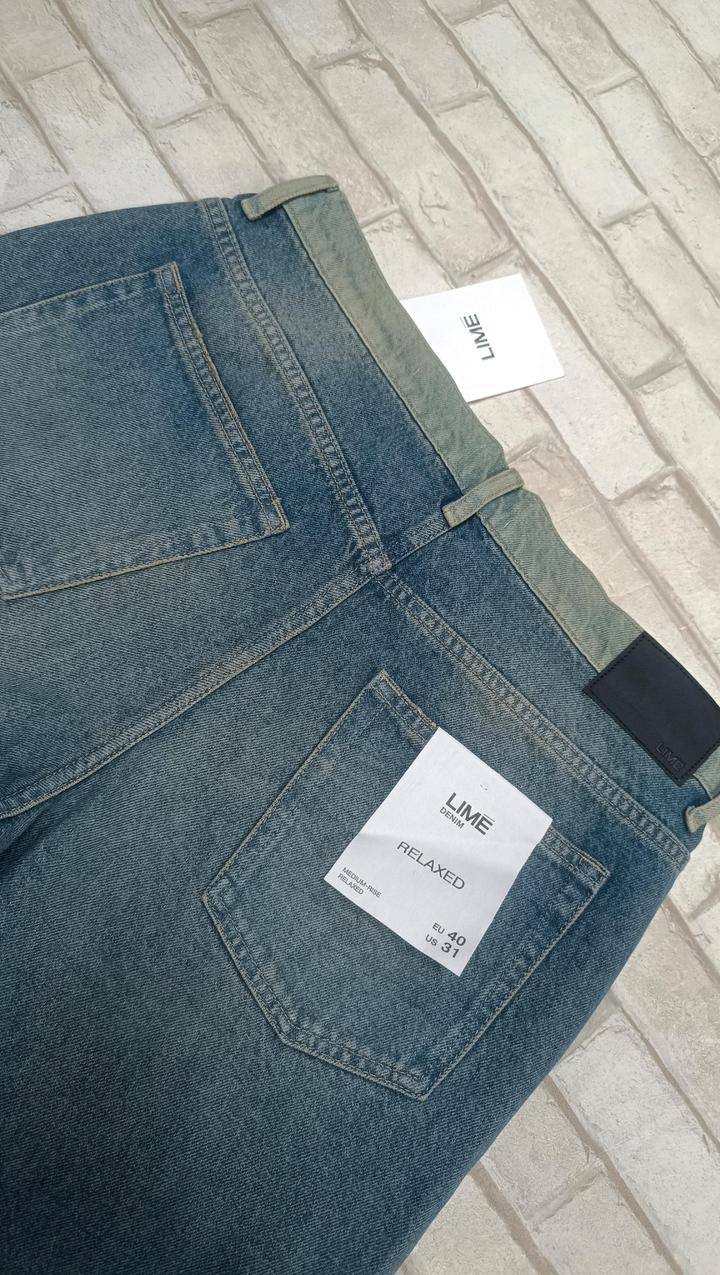 Lime, Джинсы свободного кроя со средней посадкой. Контрастные панели. Лейбл с брендированным тиснением на поясе сзади. Пять карманов. Застежка на молнию и металлическую пуговицу. Цвет: состаренный синий. Артикул: 542851