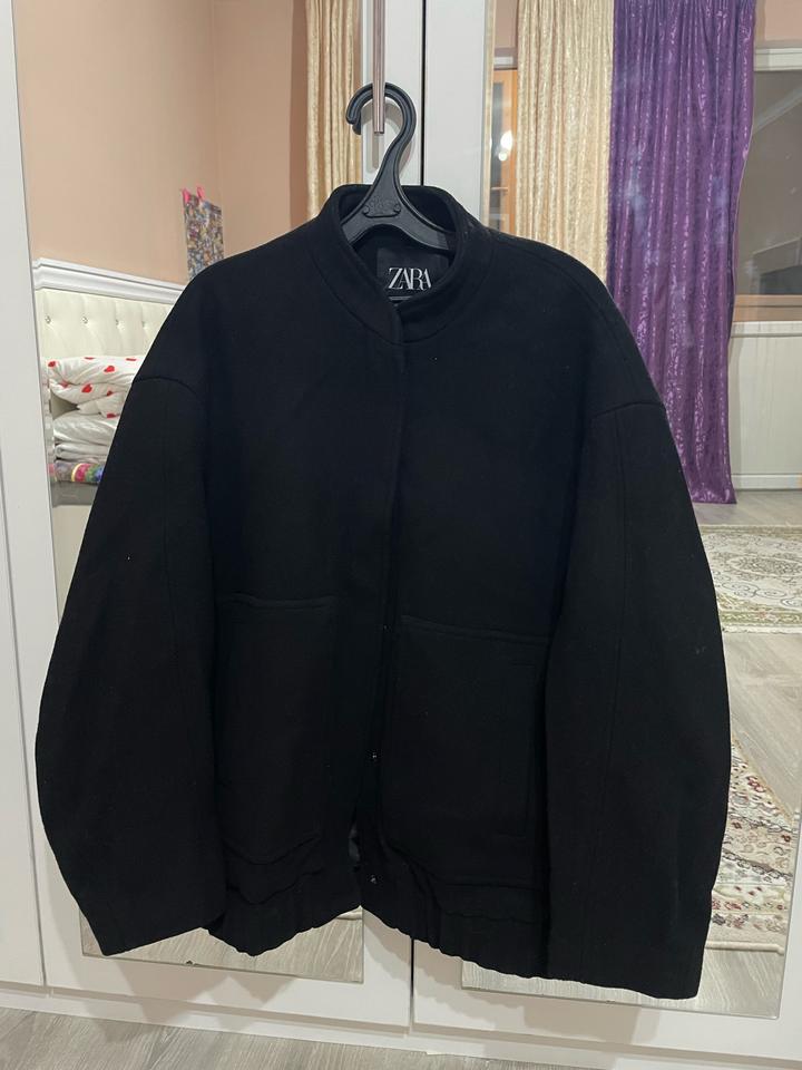 Бомбер от Zara,размер С,но идет в оверсайз стиле поэтому подходит и на М,Л. Черный цвет,качественный материал Артикул: 542892